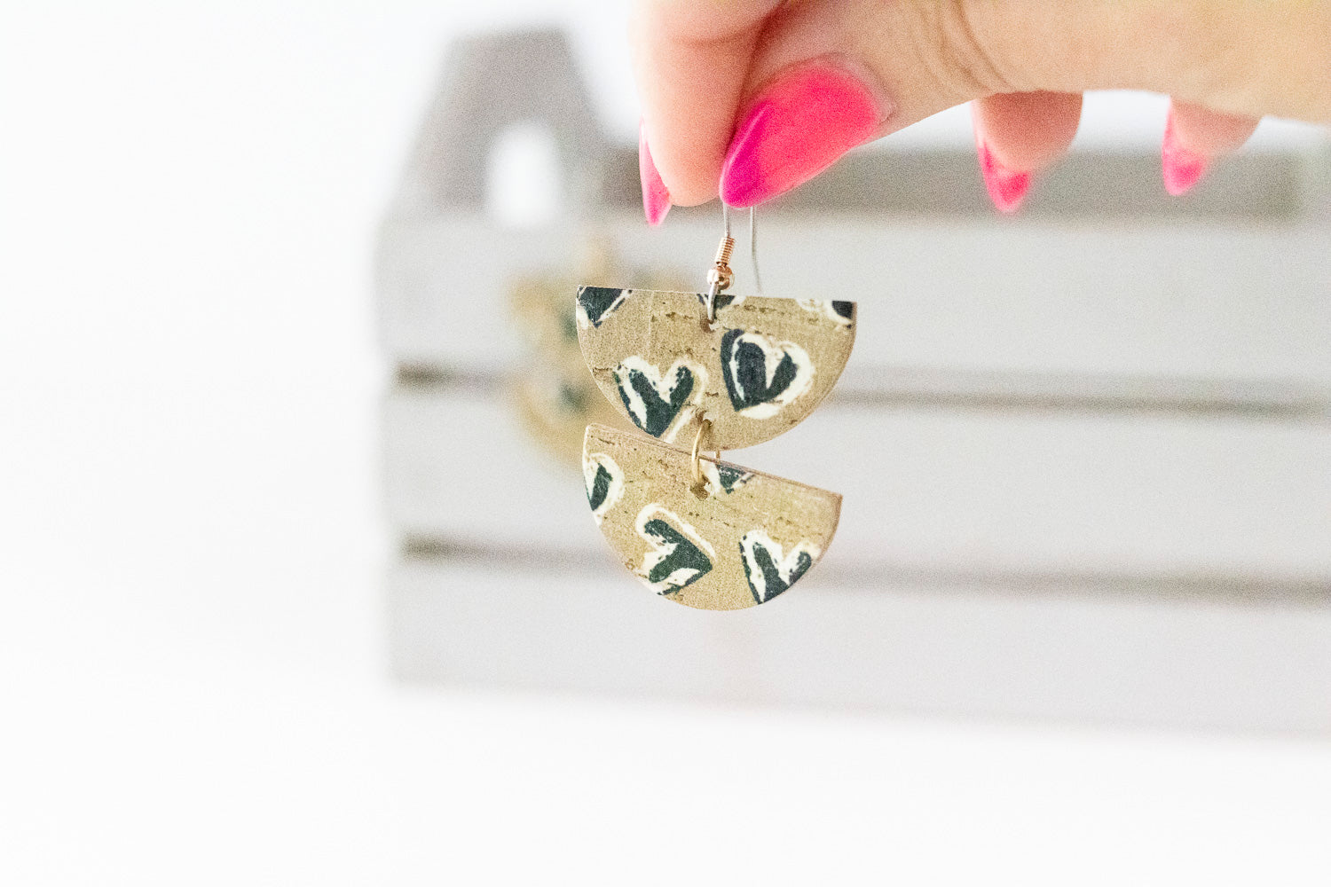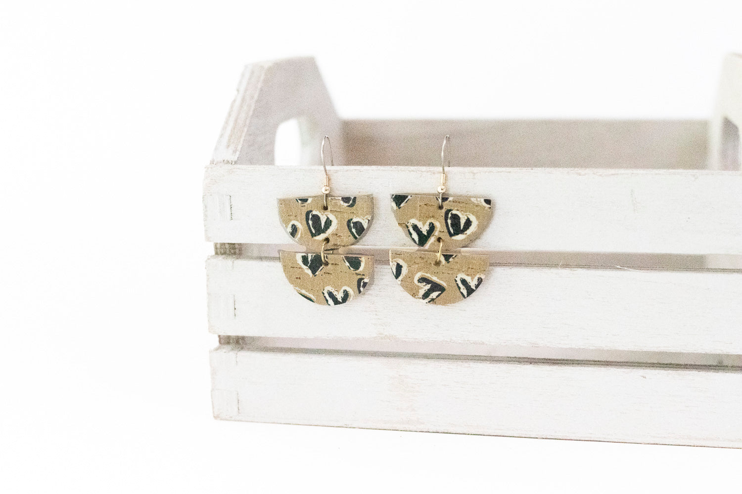 Leather Earrings / Demi Luna / Mocha Hearts Cork