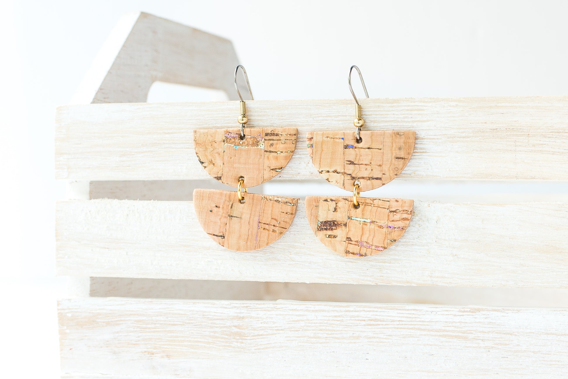 Leather Earrings / Demi Luna / Oil Spill Cork