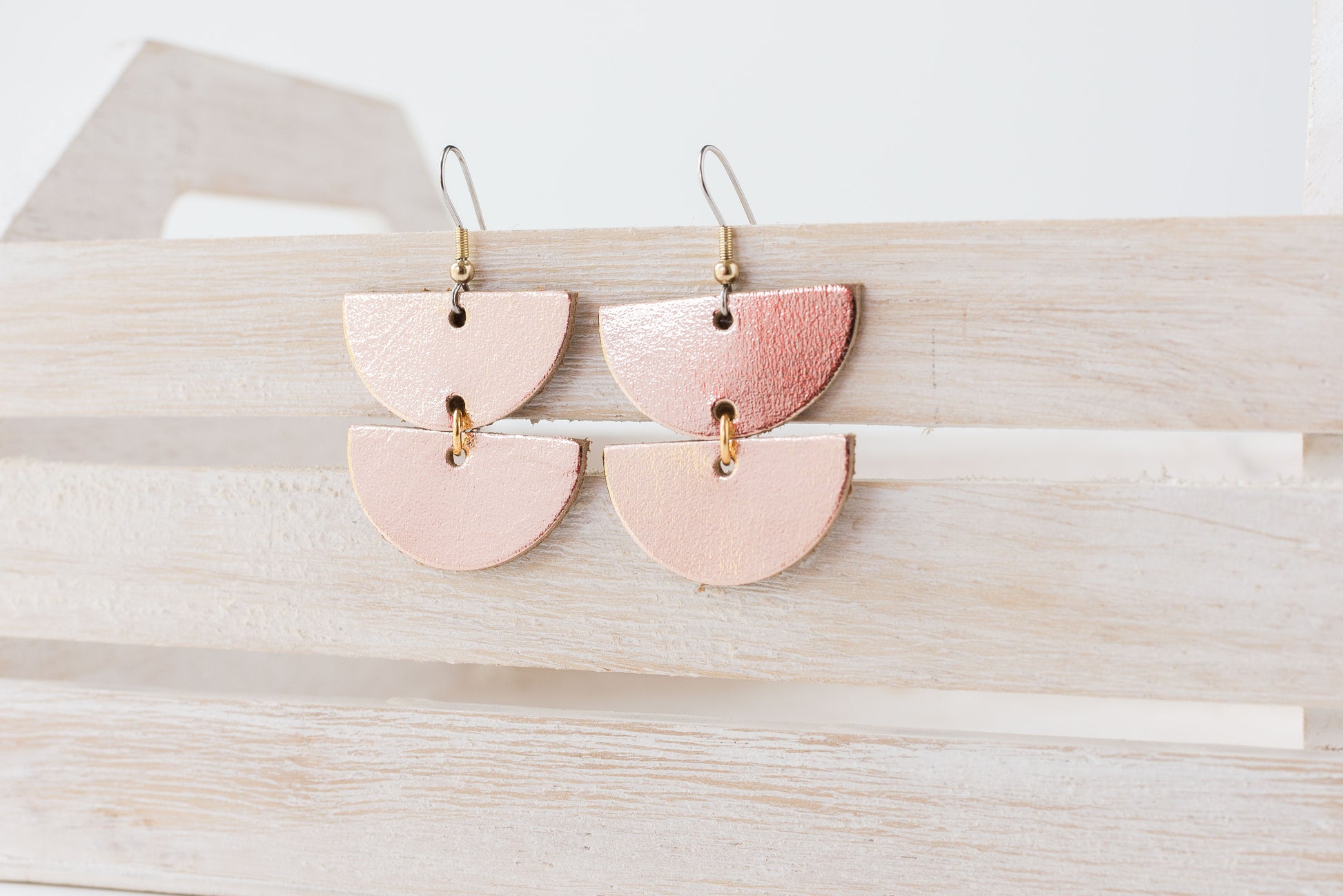 Leather Earrings / Demi Luna / Metallic Rosegold