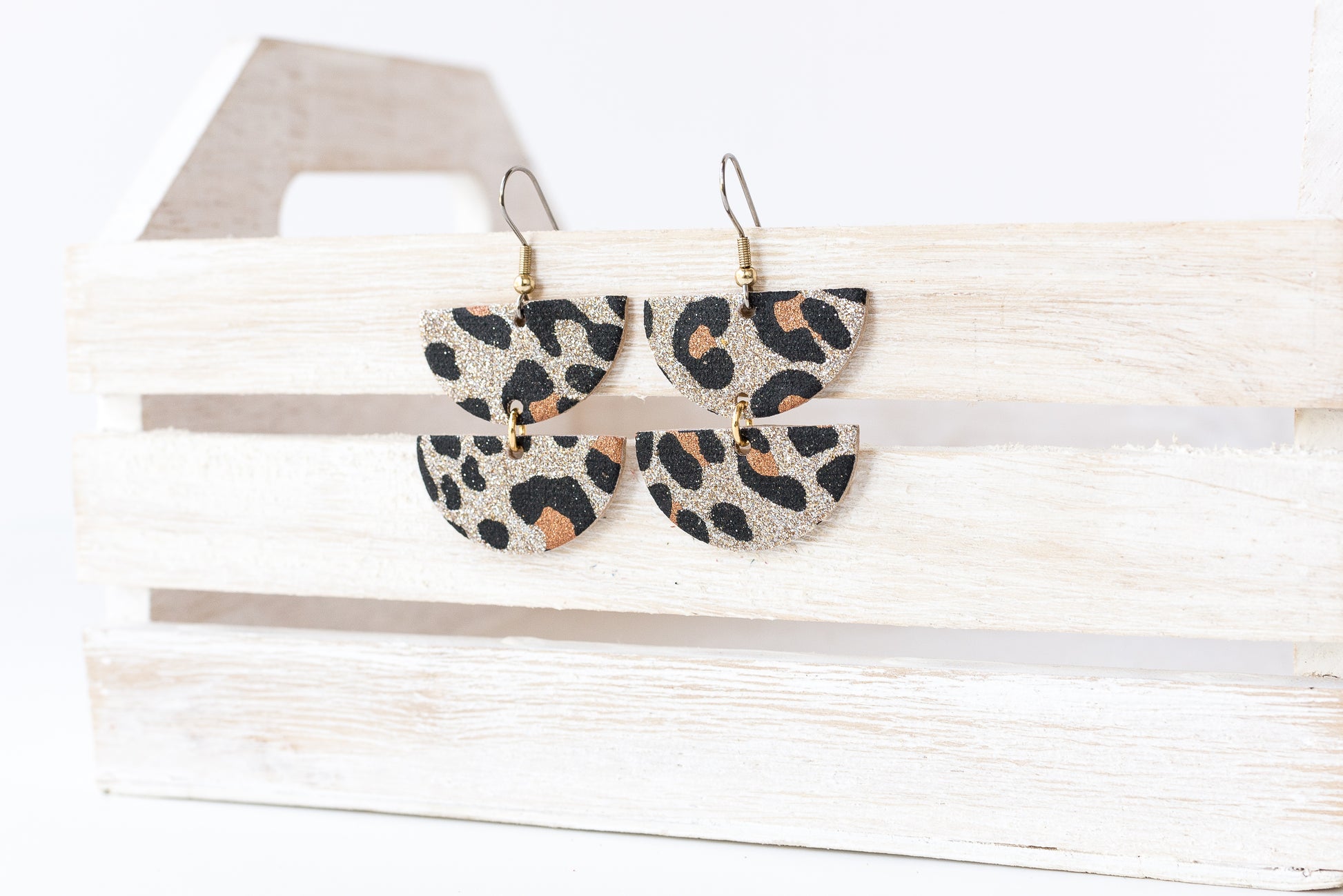 Leather Earrings / Demi Luna / Sparkle Leopard Gold