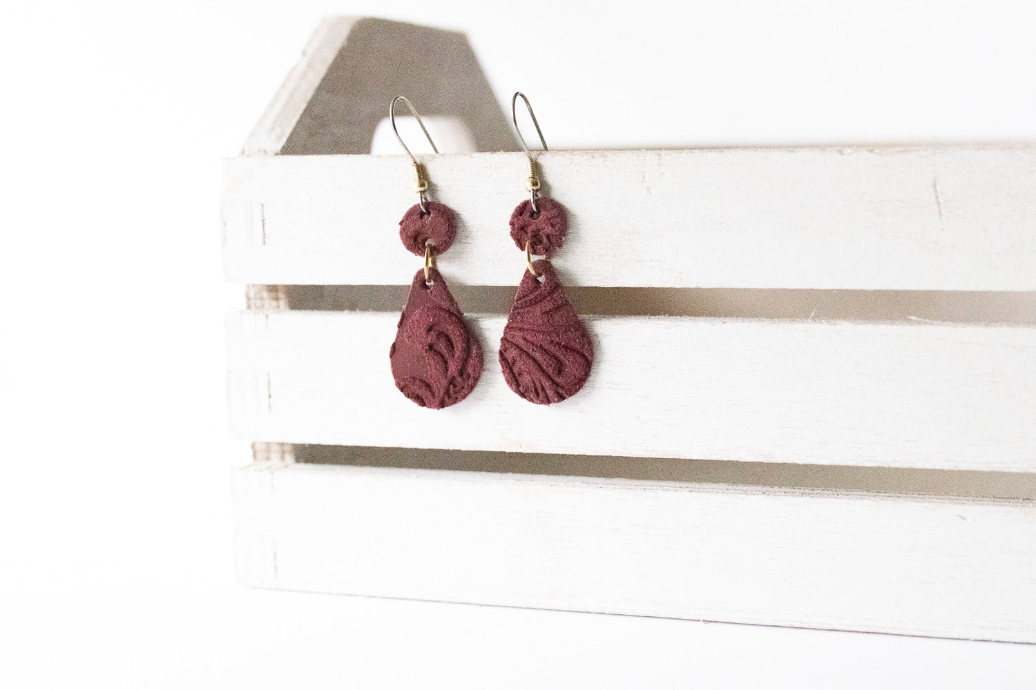 Leather Earrings / Droplets / Berry Suede