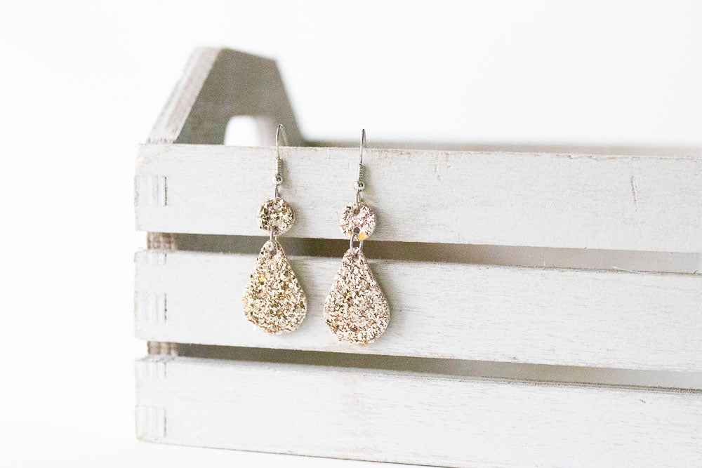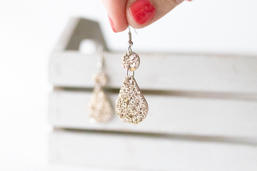 Available with surgical stainless-steel silver-tone earring hooks + clear backs.