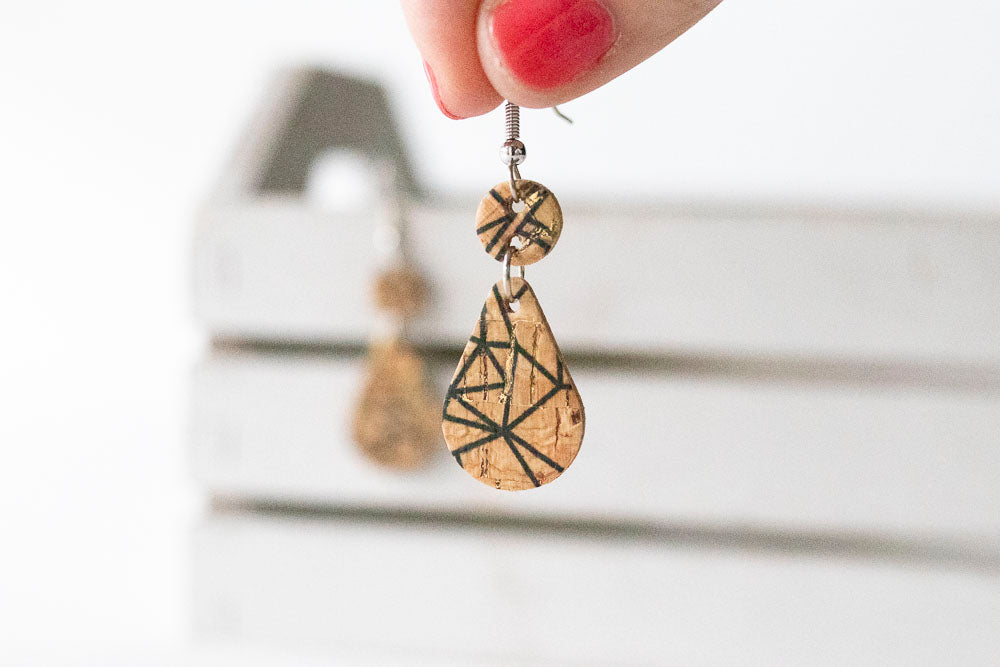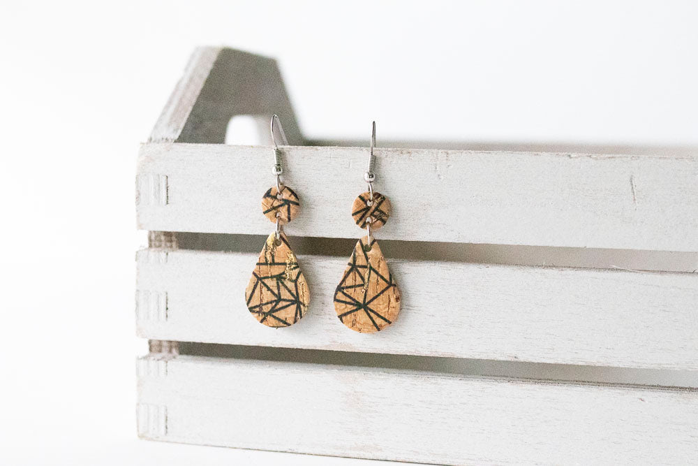 Leather Earrings / Droplets / Geo Cork