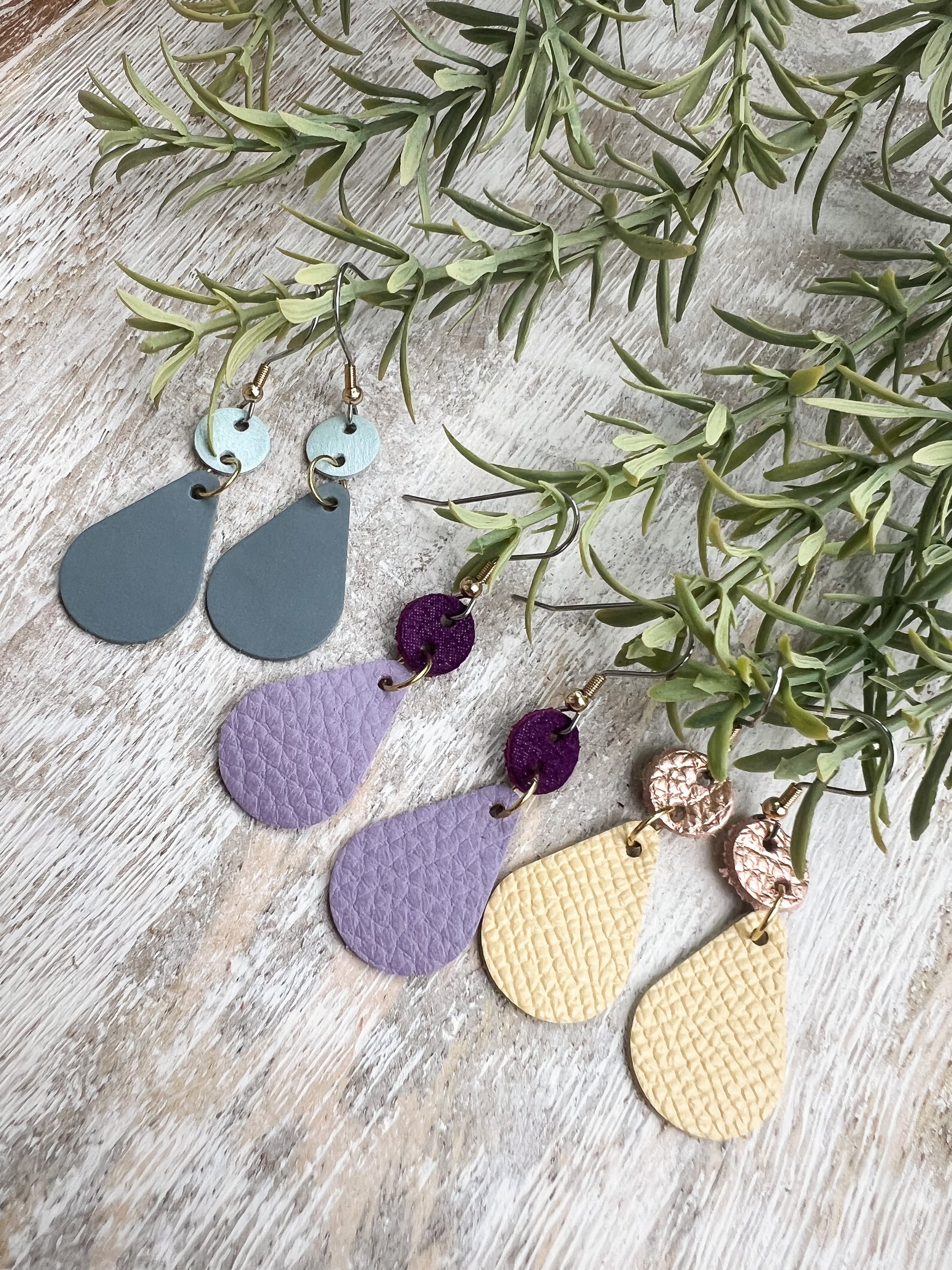 Our beautiful Droplet earrings are a simple yet lightweight way to show off a beautiful simple design in your favorite Flourish leather colors. Perfect for small & dainty earring lovers.