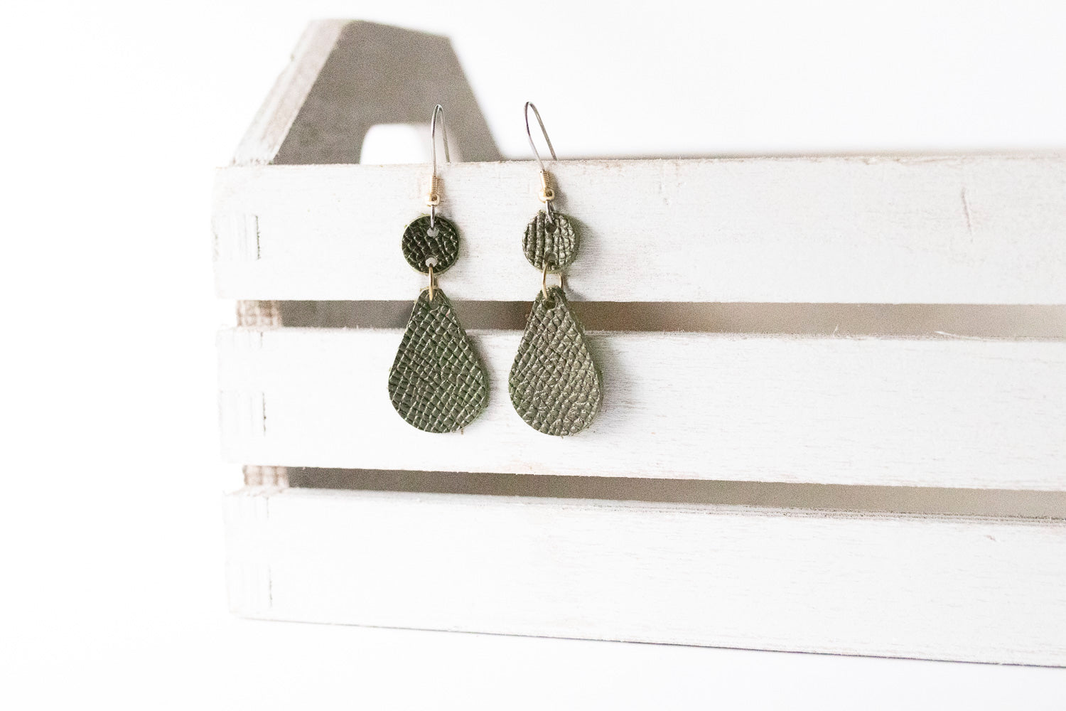 Leather Earrings / Droplets / Olive Branch