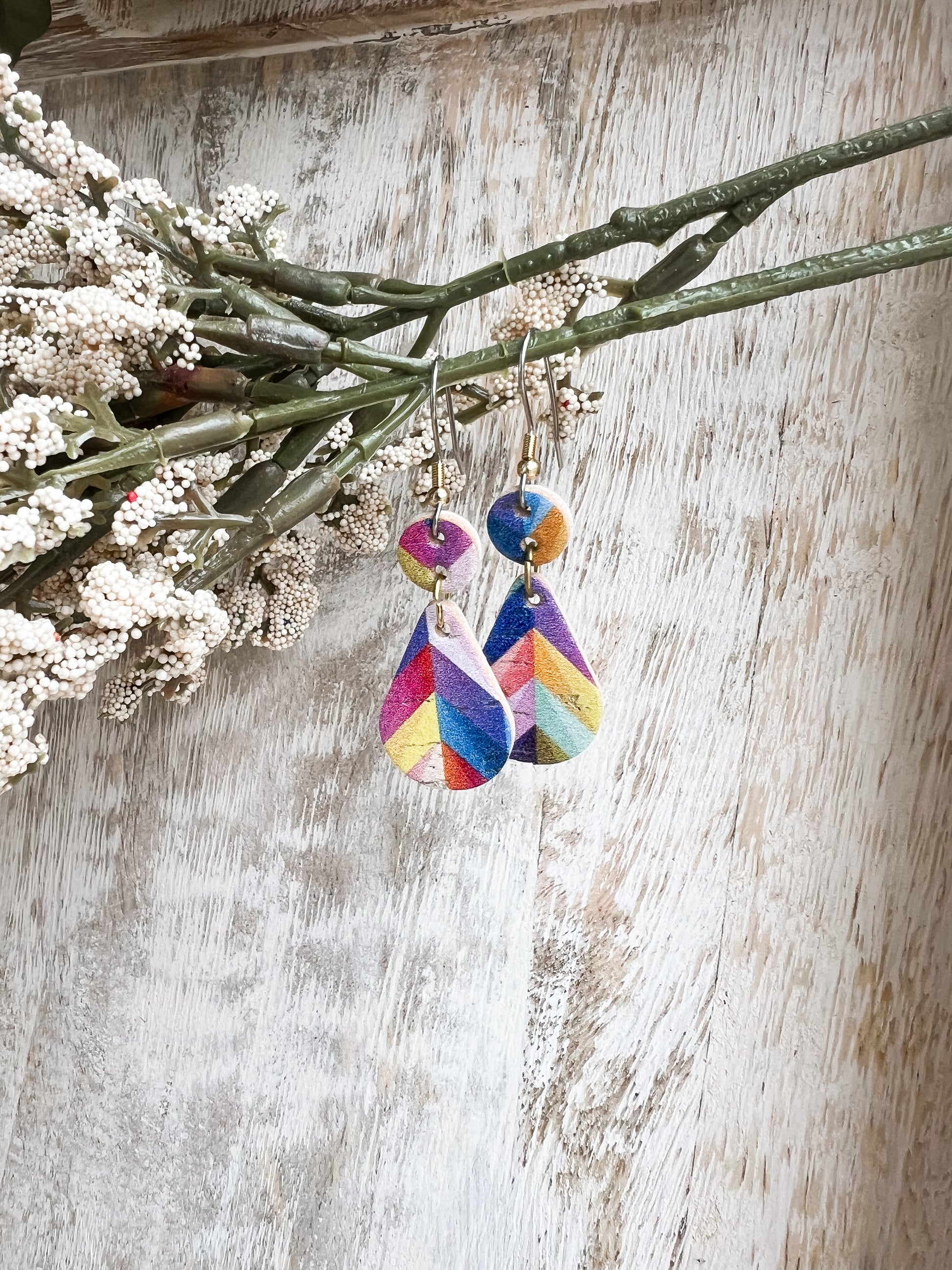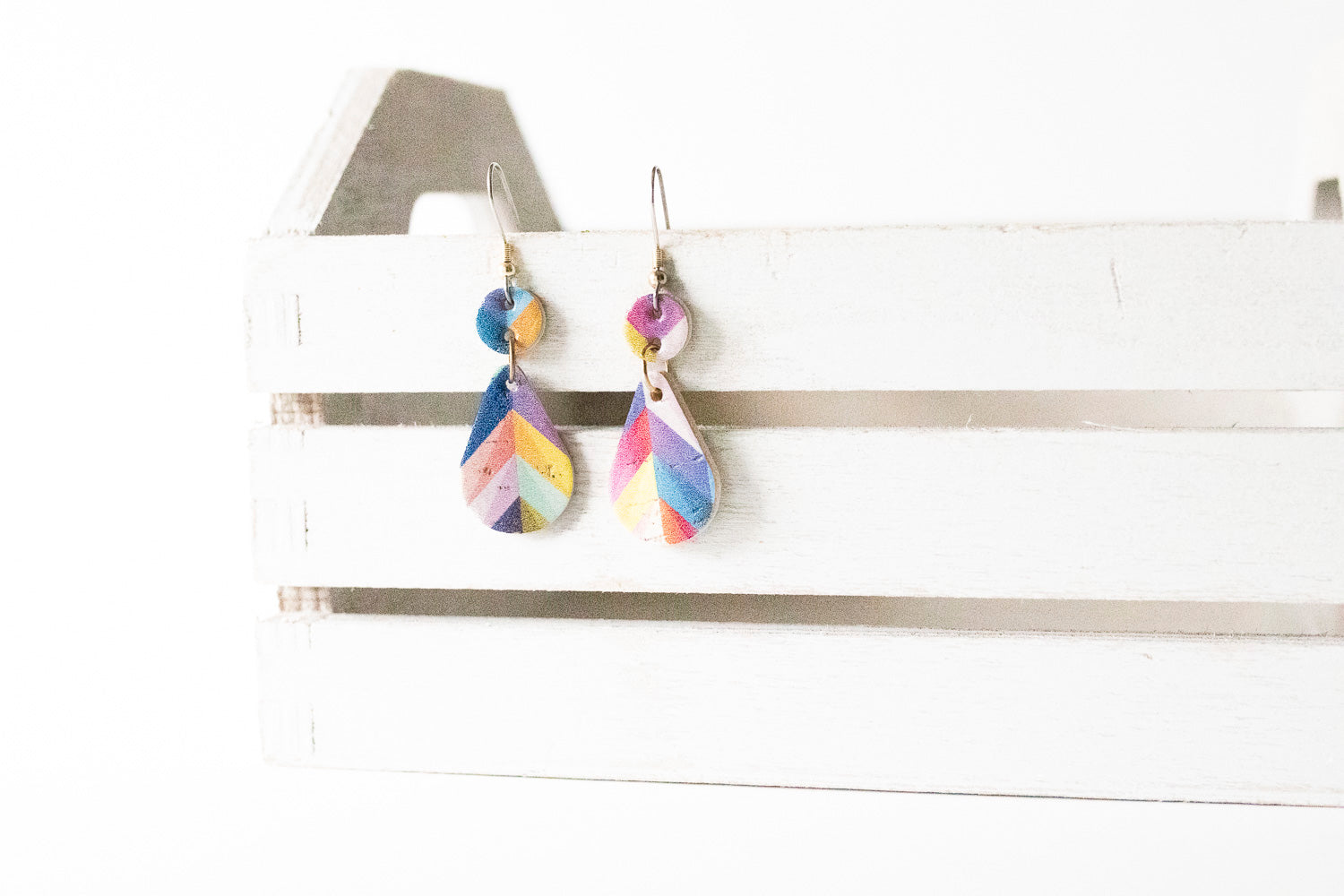 Leather Earrings / Droplets / Prismatic Shard Cork