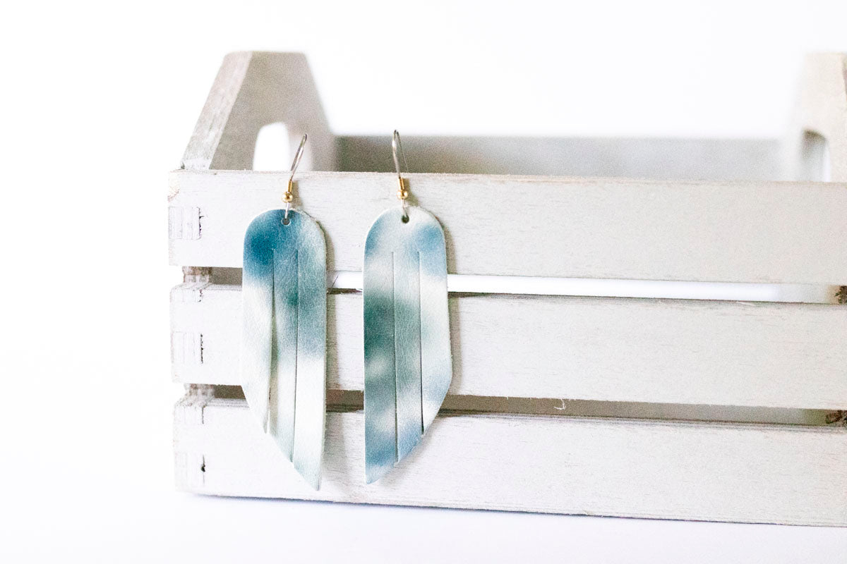 Leather Earrings / Fringe / Cloudy Tie Dye