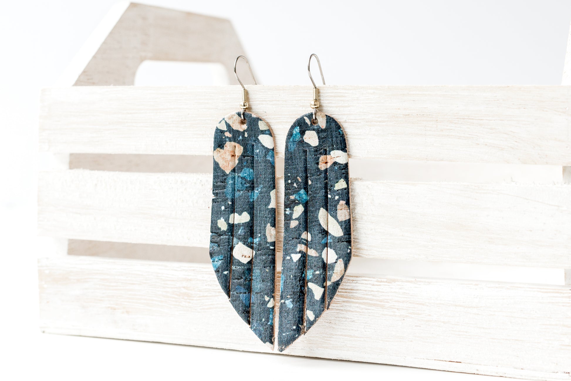 Leather Earrings / Fringe / Dark Terrazzo Cork