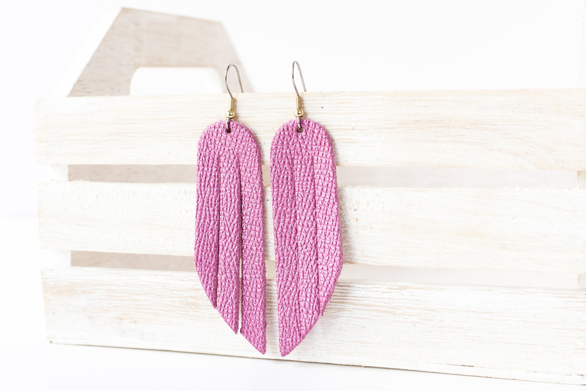 Leather Earrings / Fringe / French Rose Shimmer
