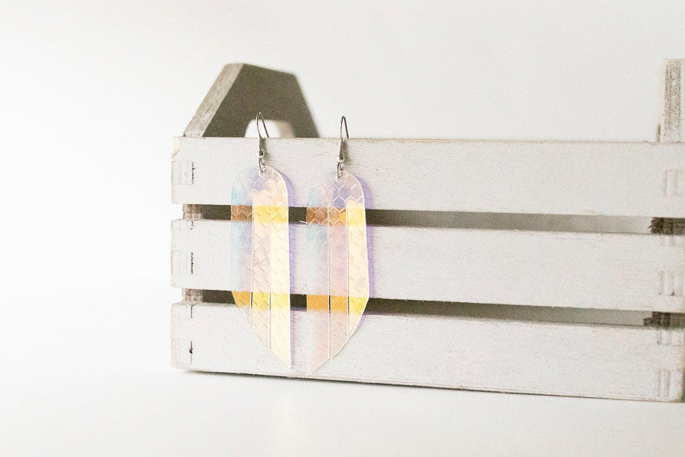 Leather Earrings / Fringe / Honeycomb Prism Jelly