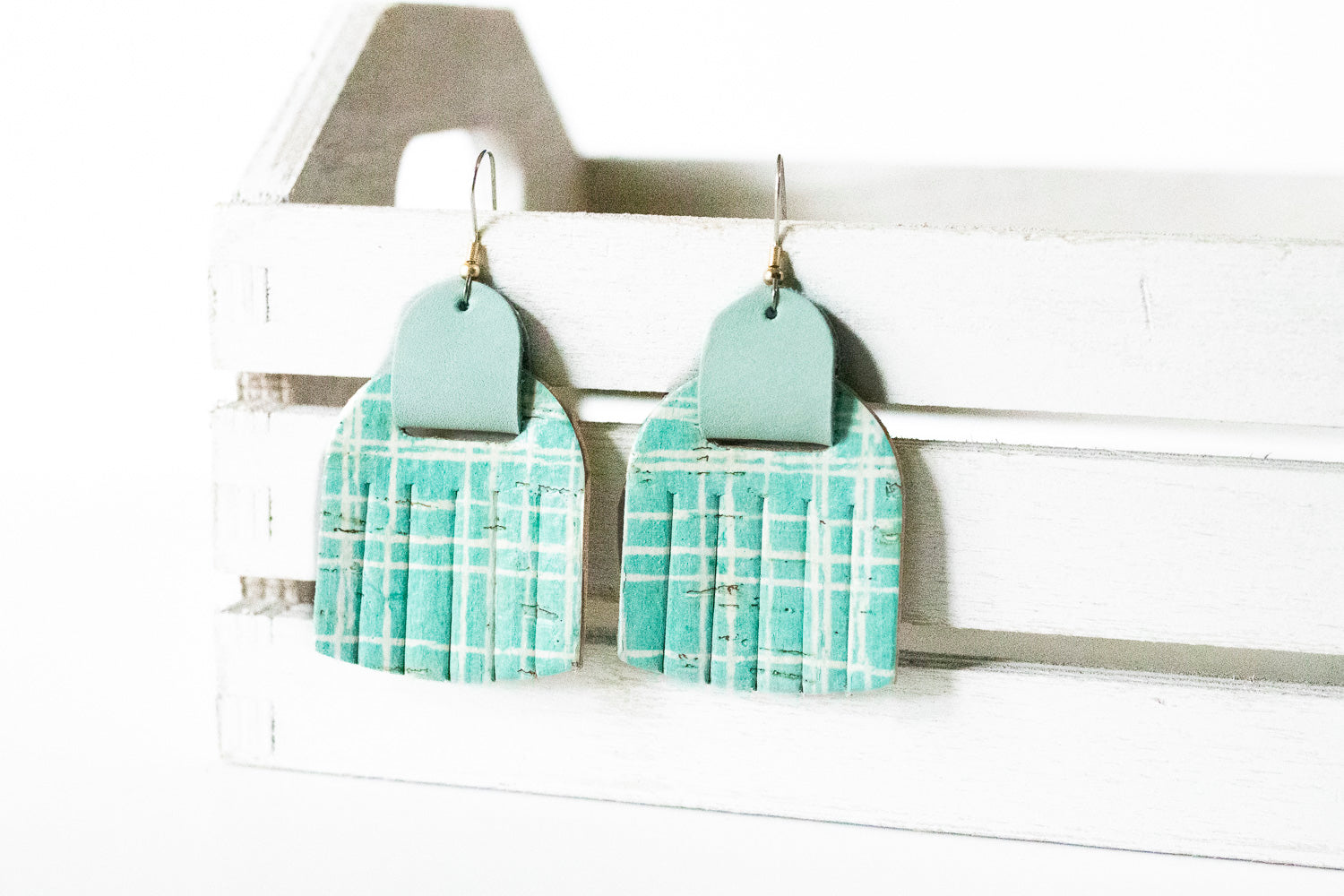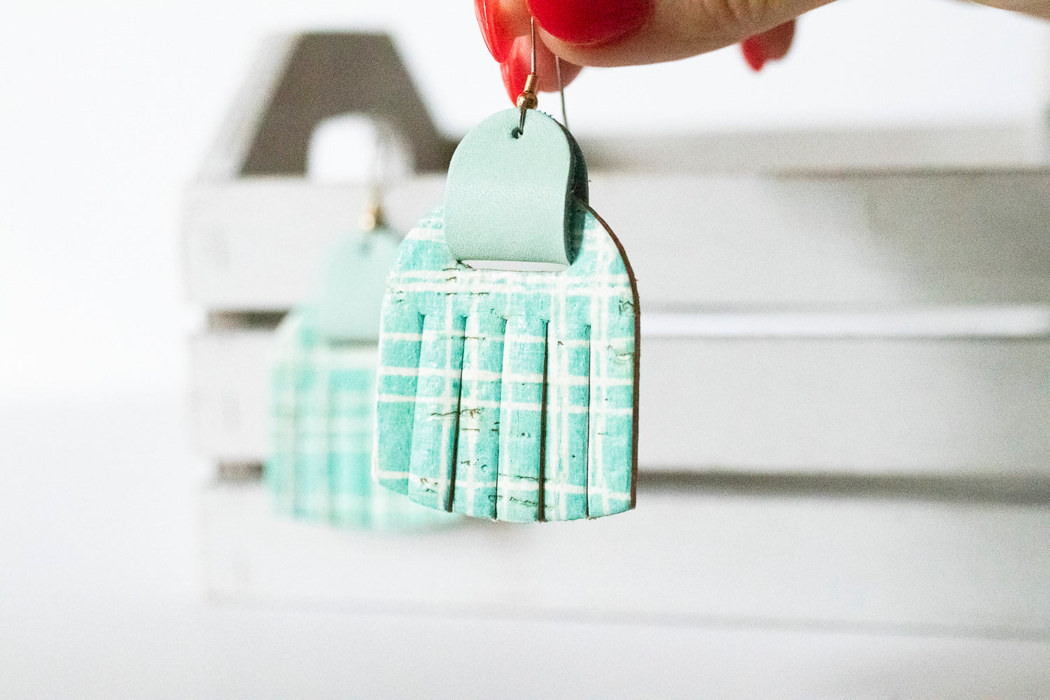 Leather Earrings / Fringies / Beach Boardwalk Cork & Cool Mint
