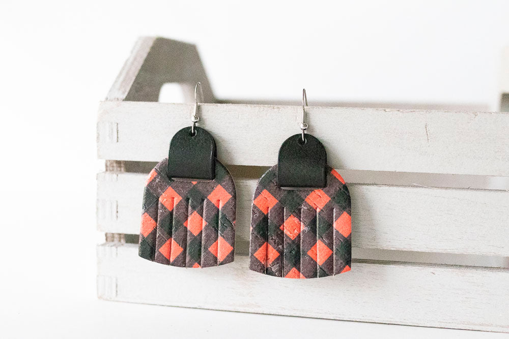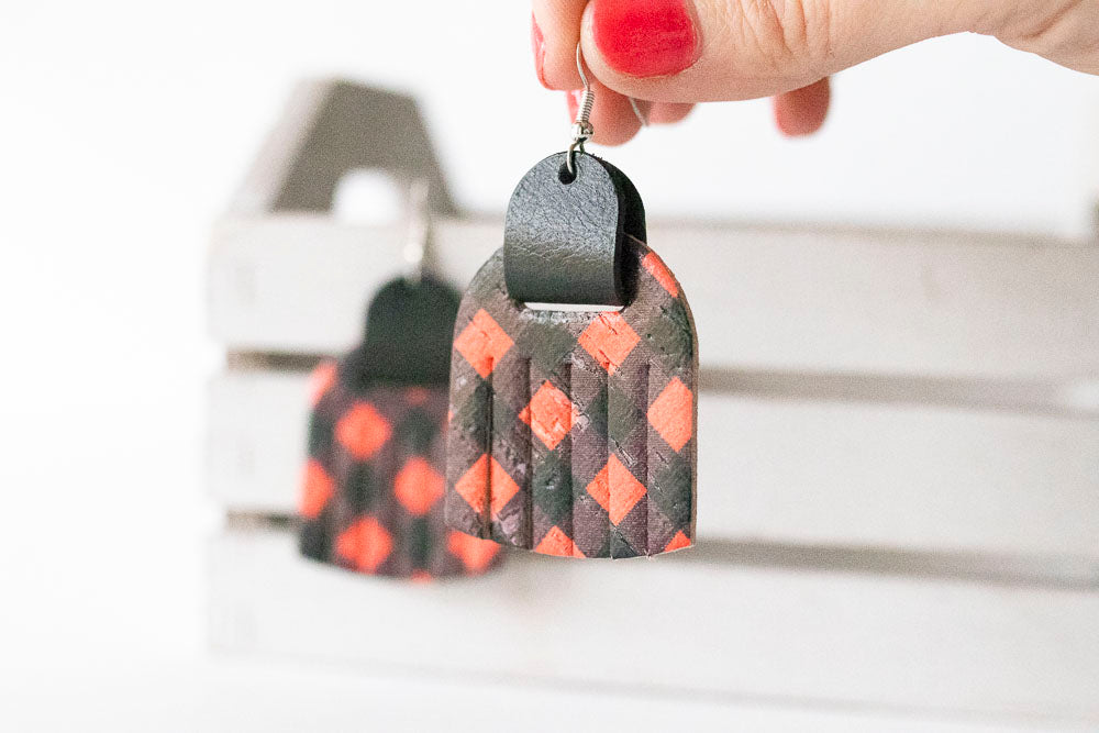 Leather Earrings / Fringies / Buffalo Check Cork & Pitch Black