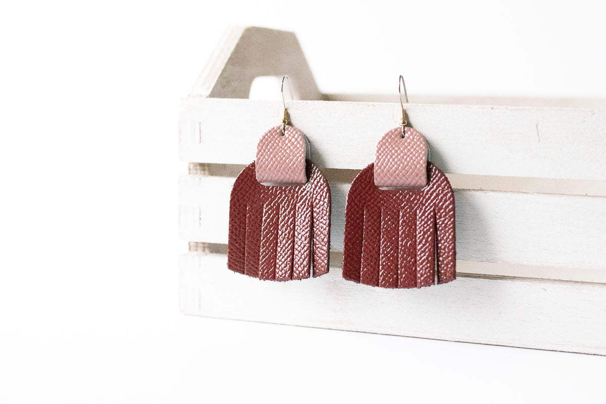 Leather Earrings / Fringies / Cherry Sage & Desert Rose