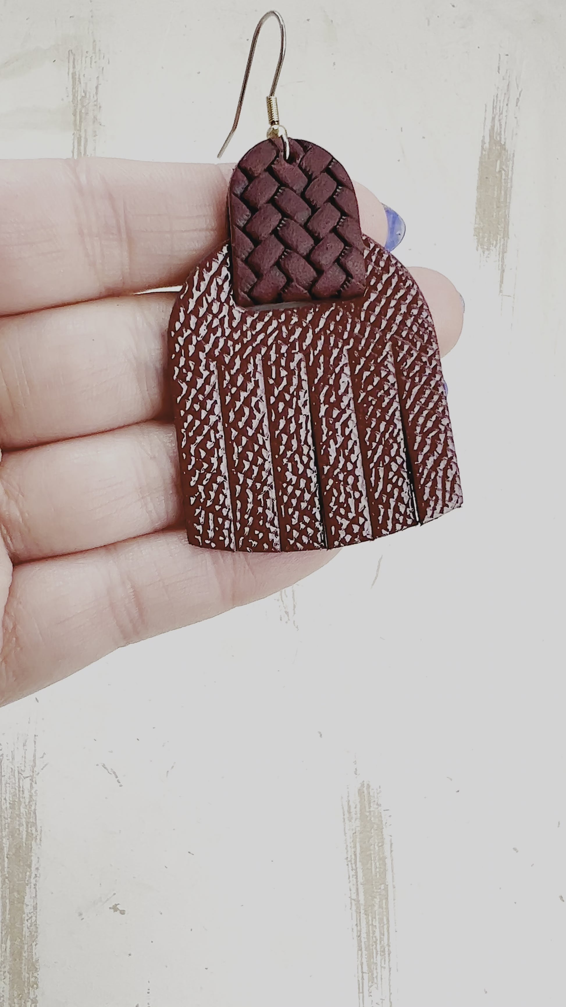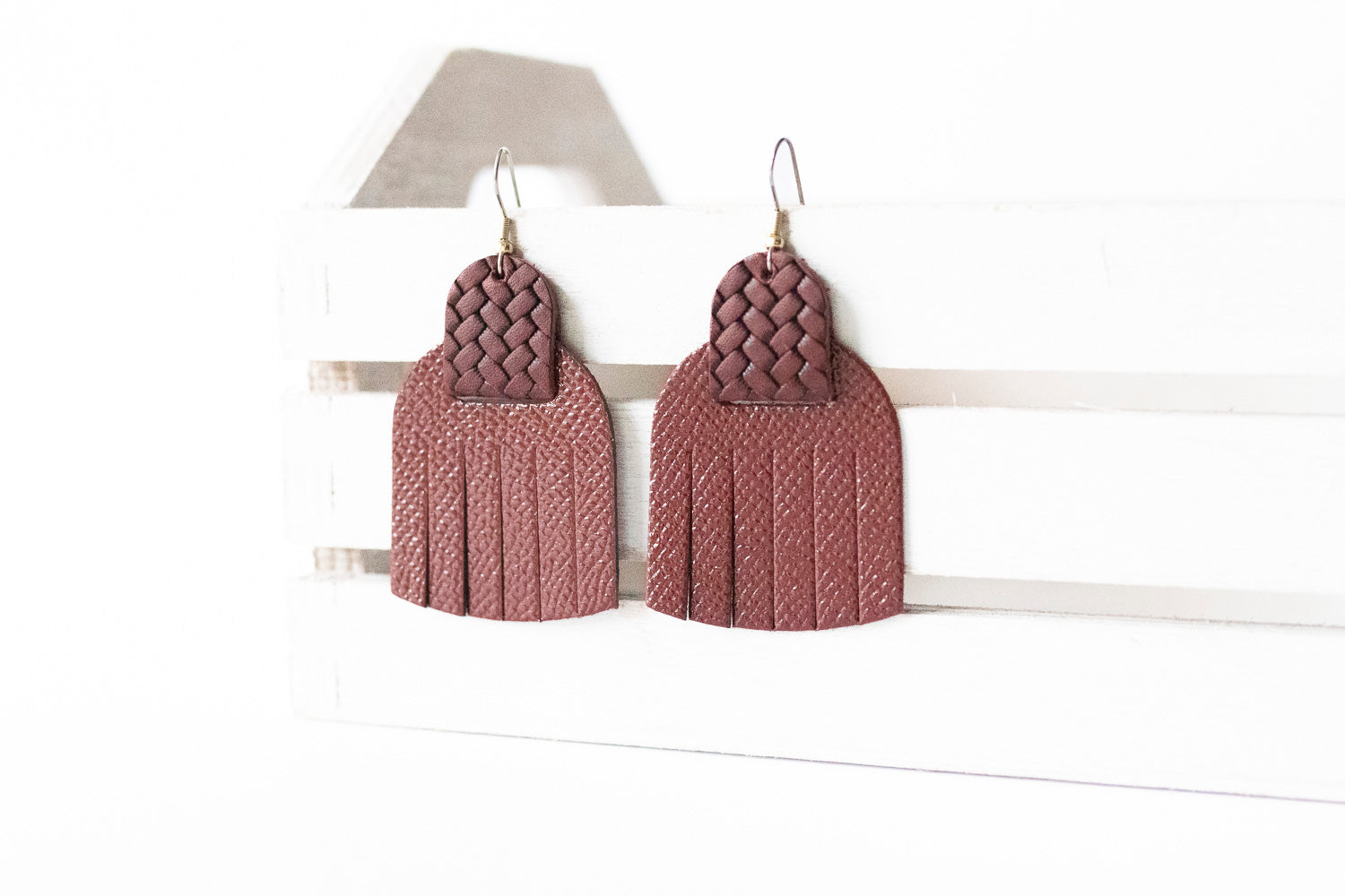 Leather Earrings / Fringies / Cherry Sage & Woven Cabernet