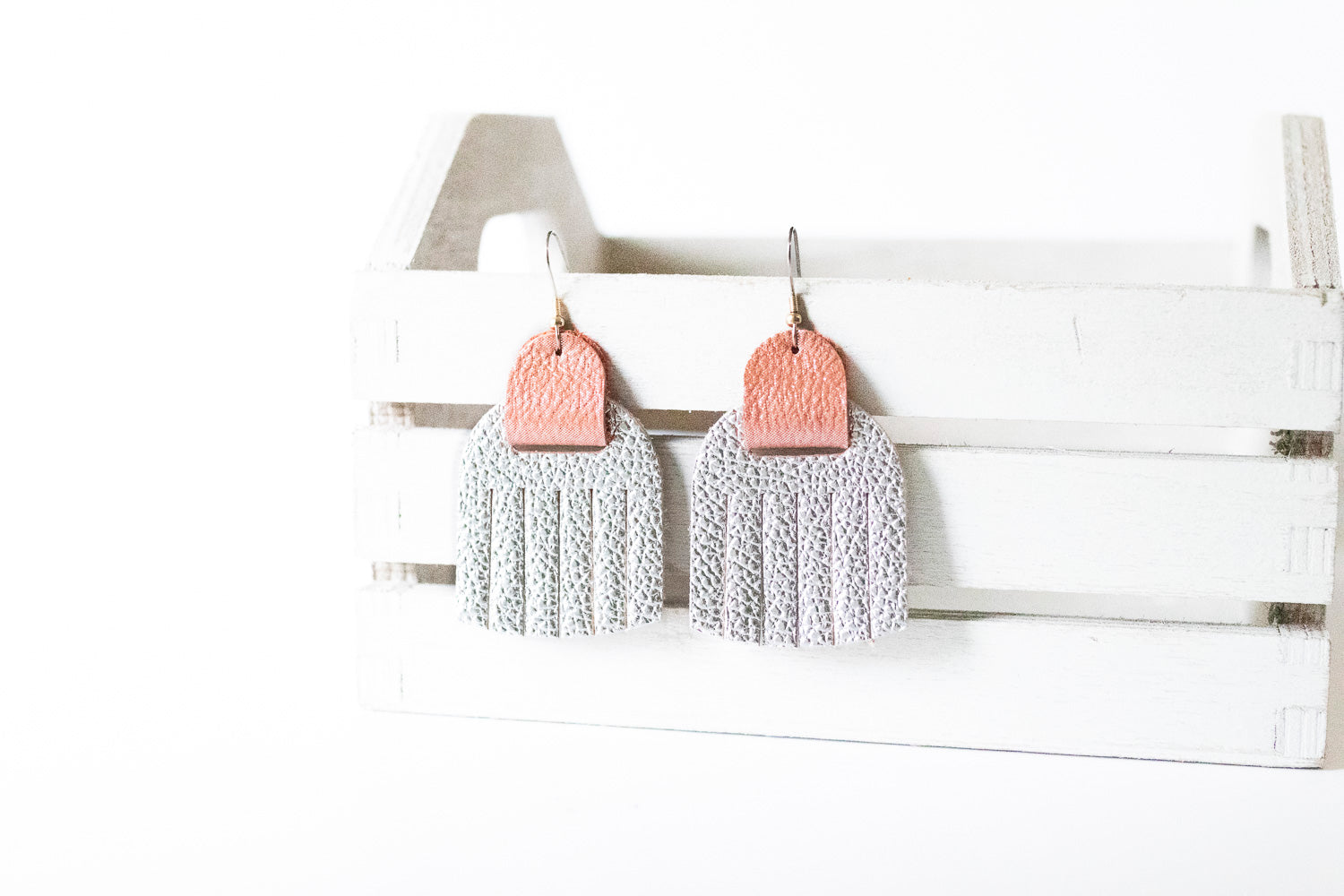 Leather Earrings / Fringies / Chrome Spurs & Peach Shimmer
