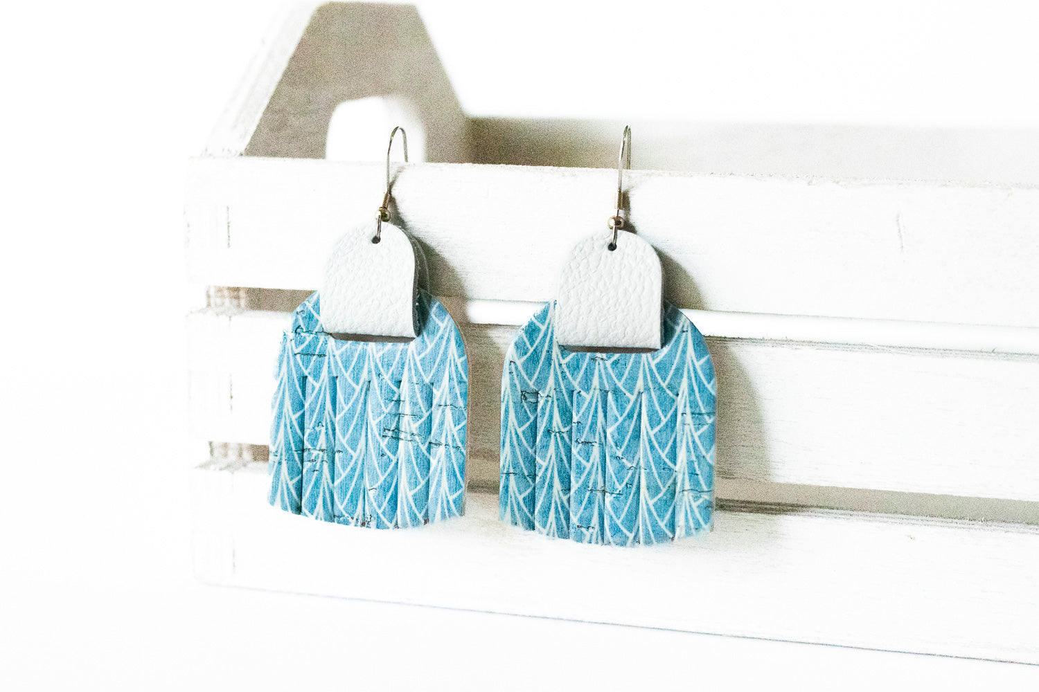 Leather Earrings / Fringies / Crashing Waves Cork & White