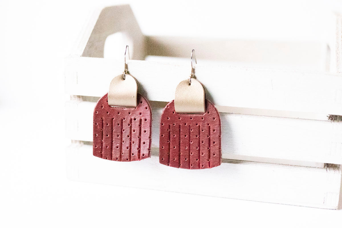 Leather Earrings / Fringies / Dark Cherry & Gold Earth