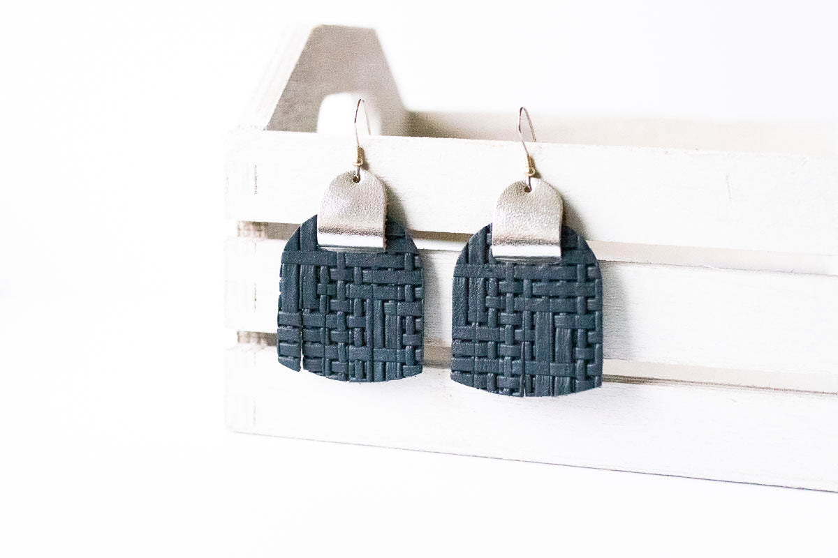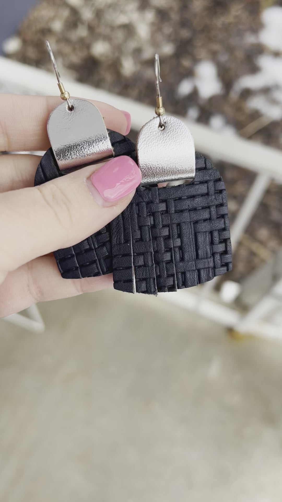 Leather Earrings / Fringies / Dark Navy Woven & Metallic Silver
