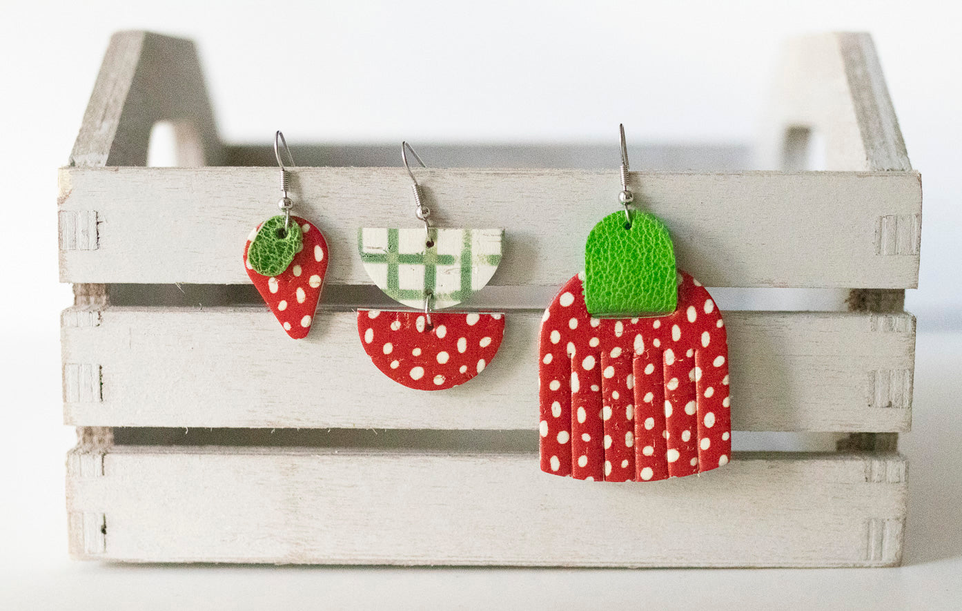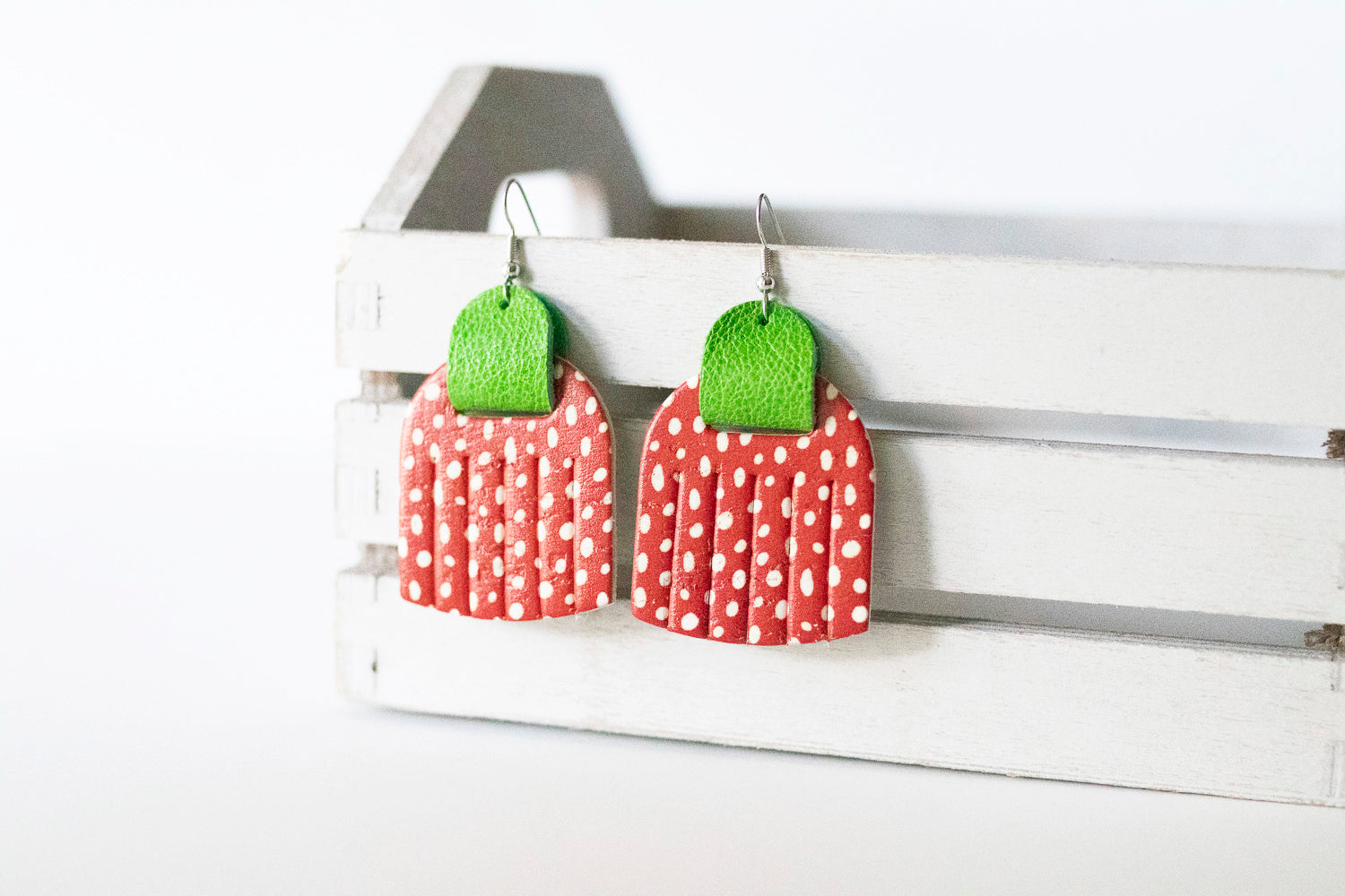 Leather Earrings / Fringies / Giant Strawberry