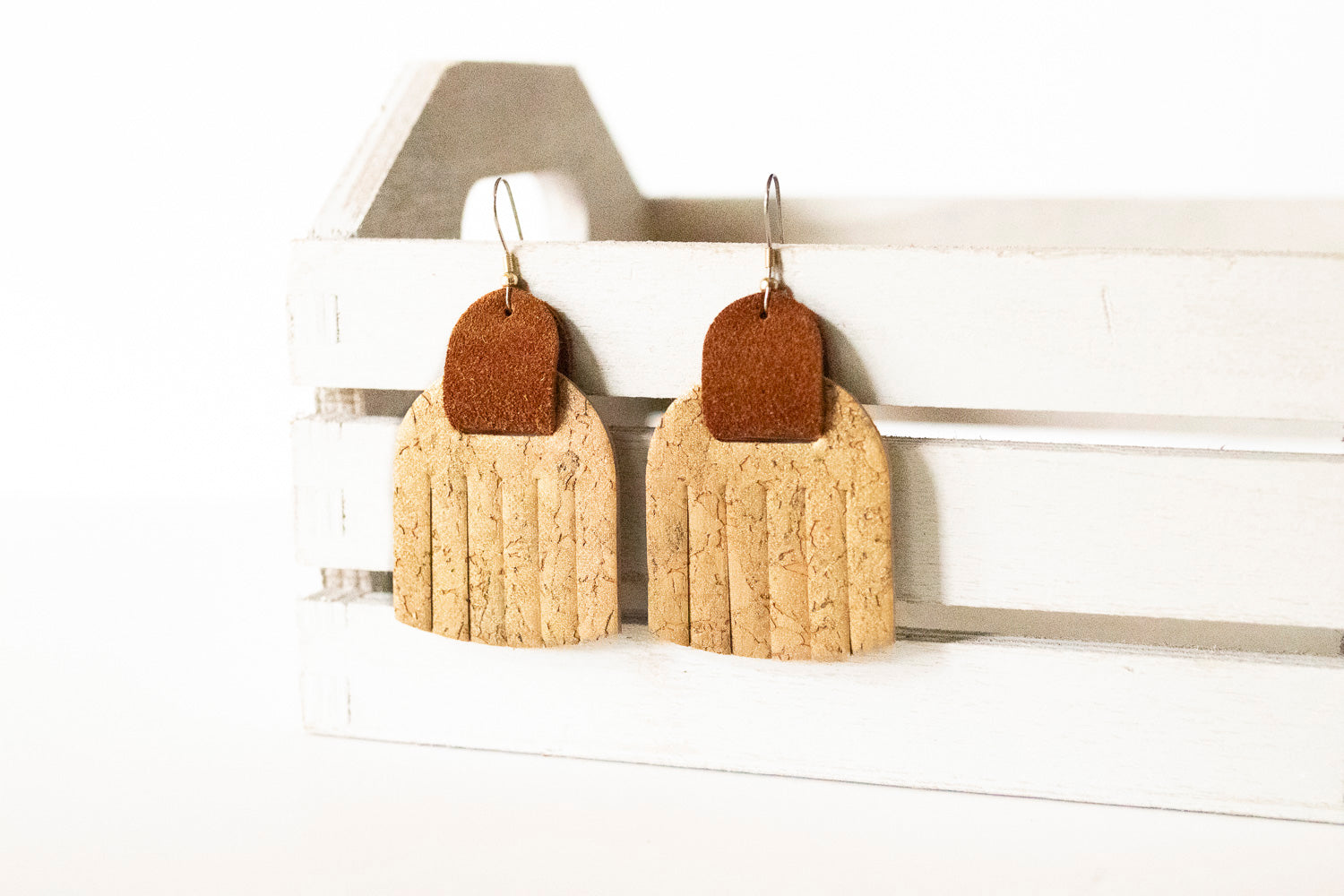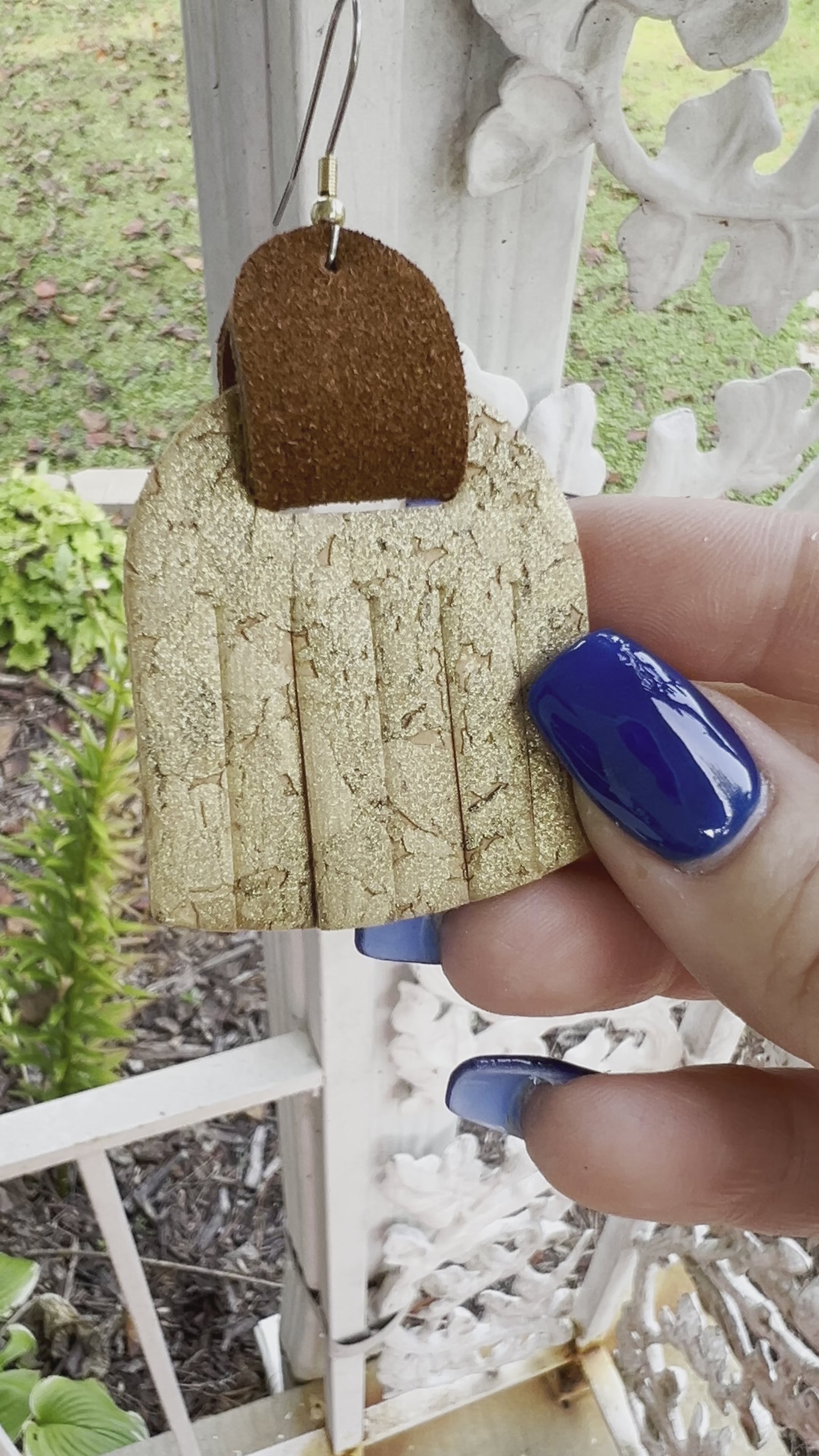 Leather Earrings / Fringies / Gold Flake Cork & Toast Suede