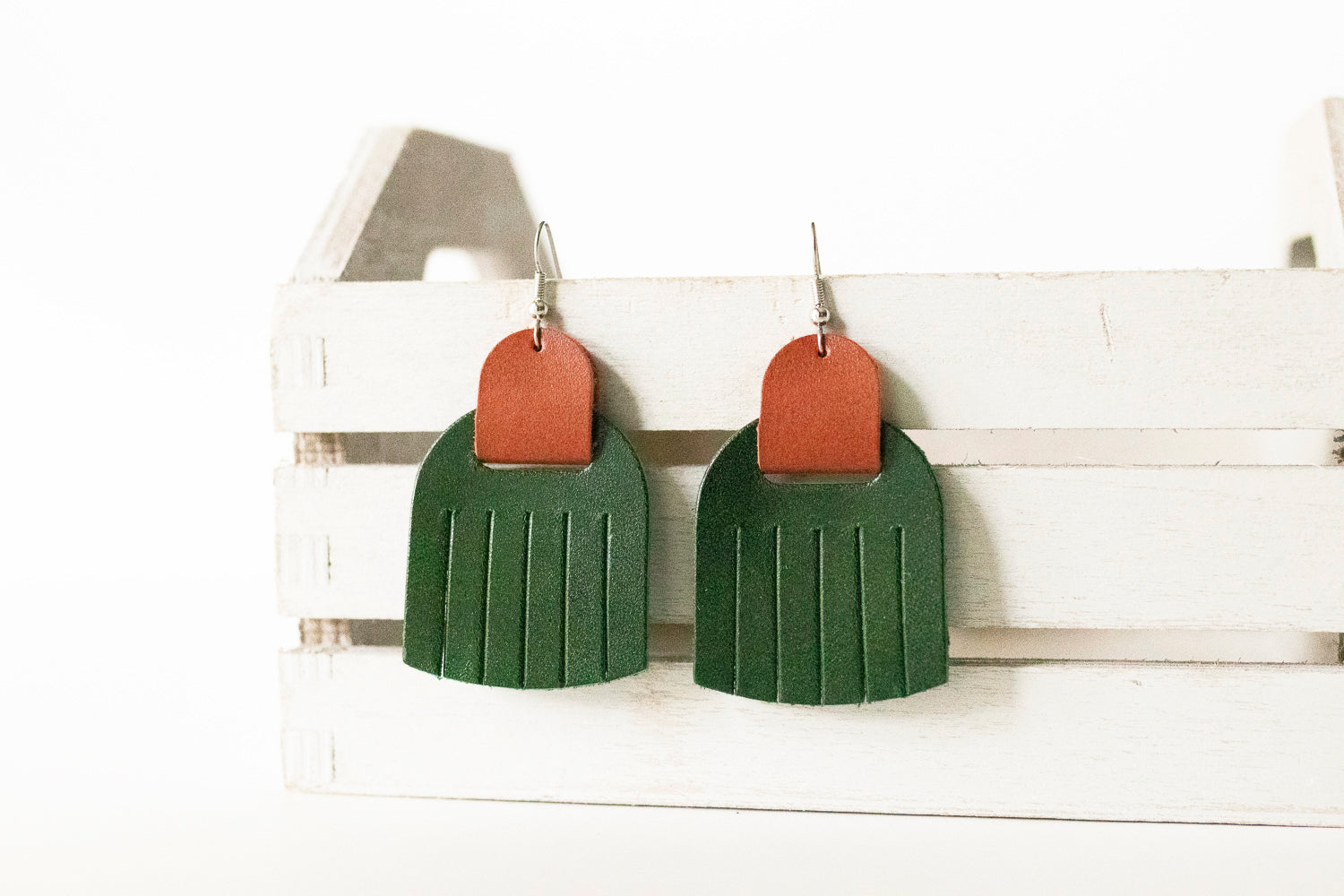 Leather Earrings / Fringies / Pine Tree & Autumn Fire