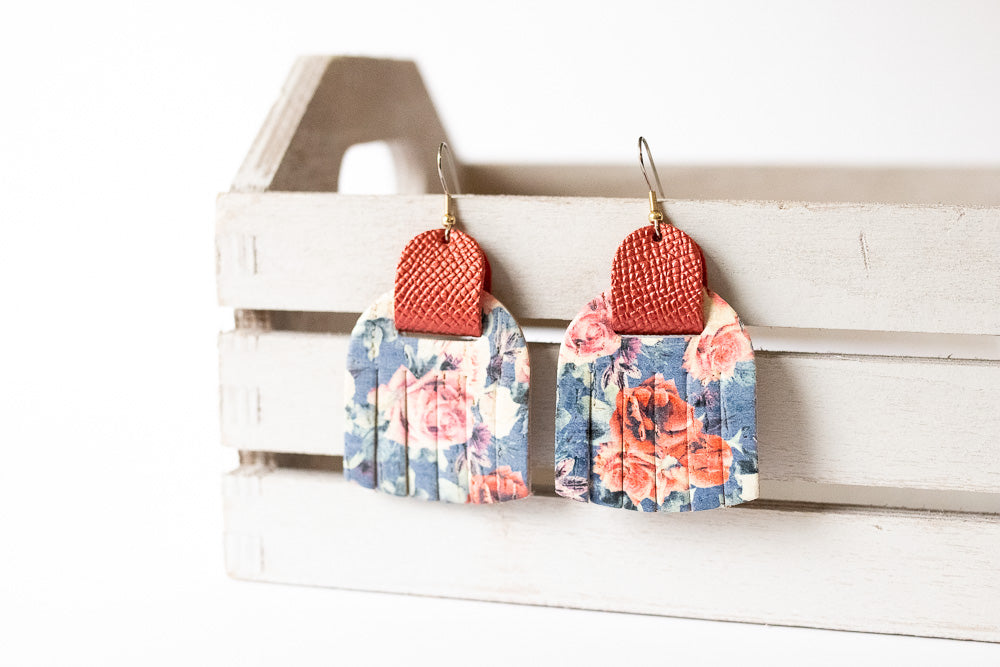 Leather Earrings / Fringies / Pink Roses Cork & Fire Opal Shimmer