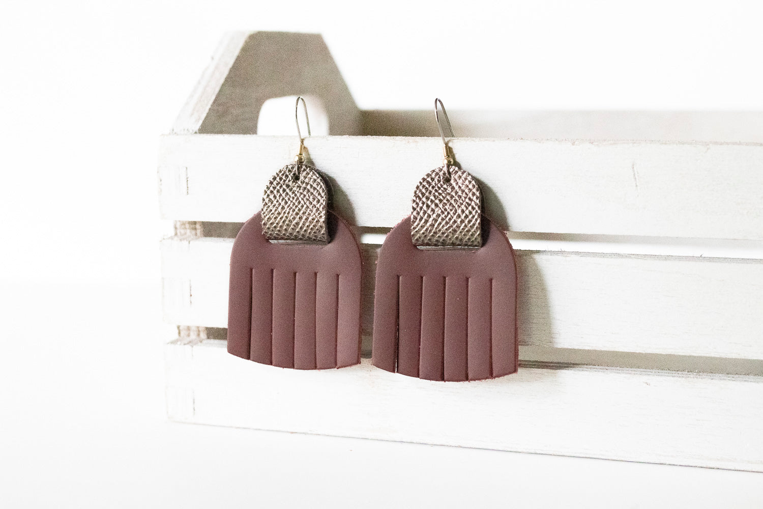 Leather Earrings / Fringies / Smooth Sangria & Gunmetal