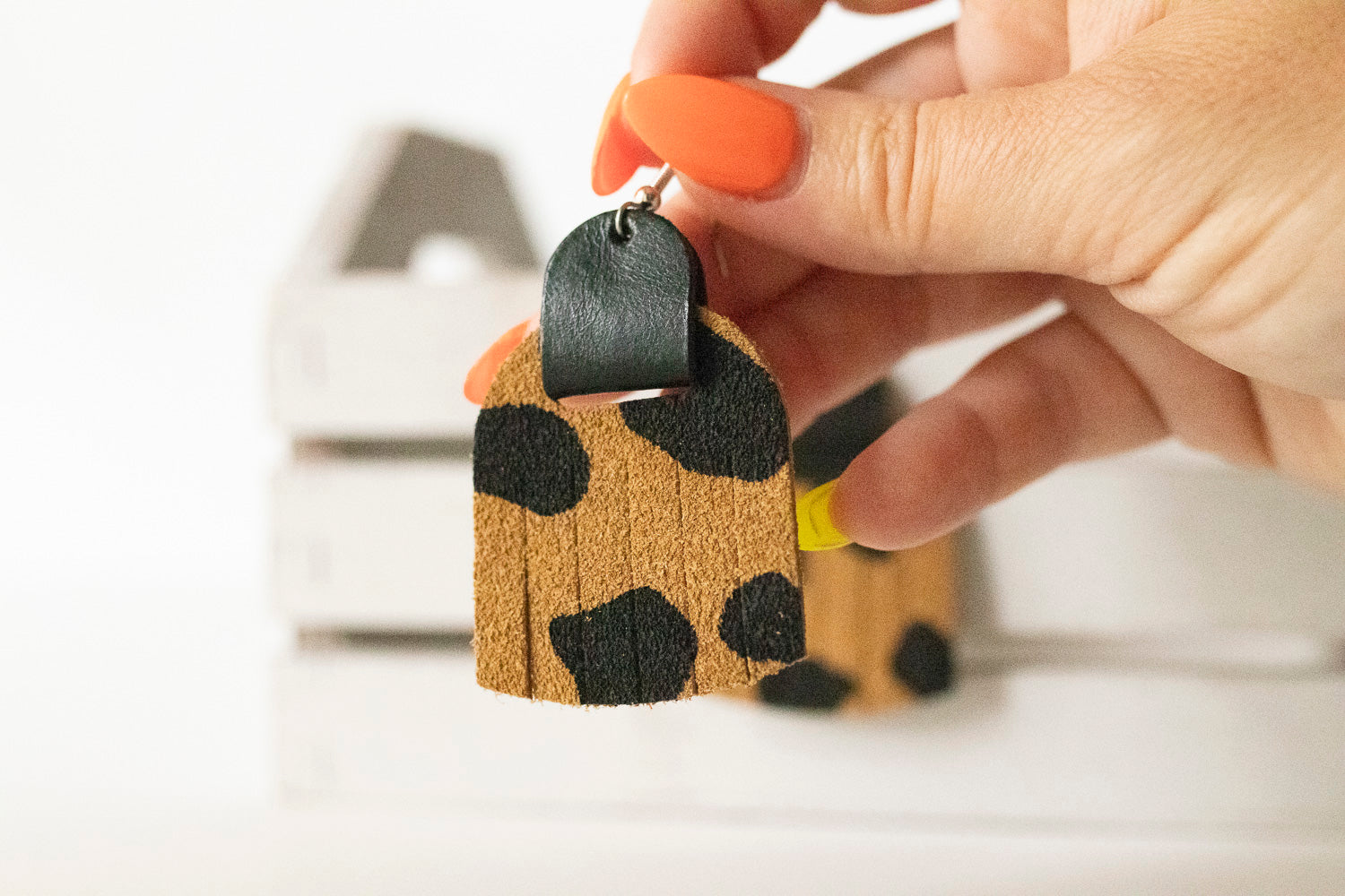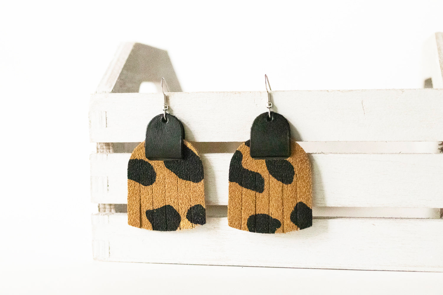Leather Earrings / Fringies / Tan Leopard Suede & Pitch Black