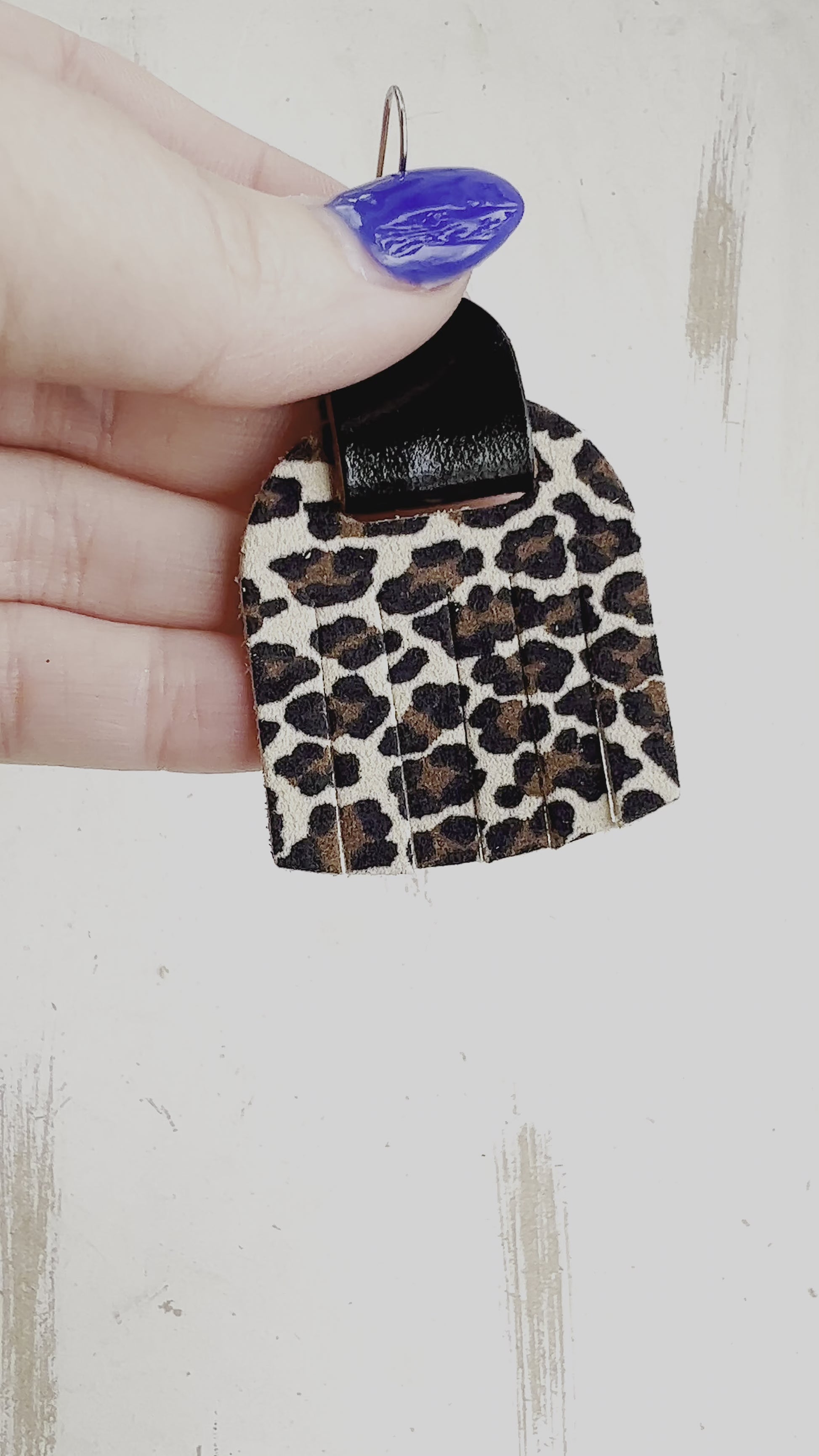 Leather Earrings / Fringies / Velvet Leopard & Metallic Black