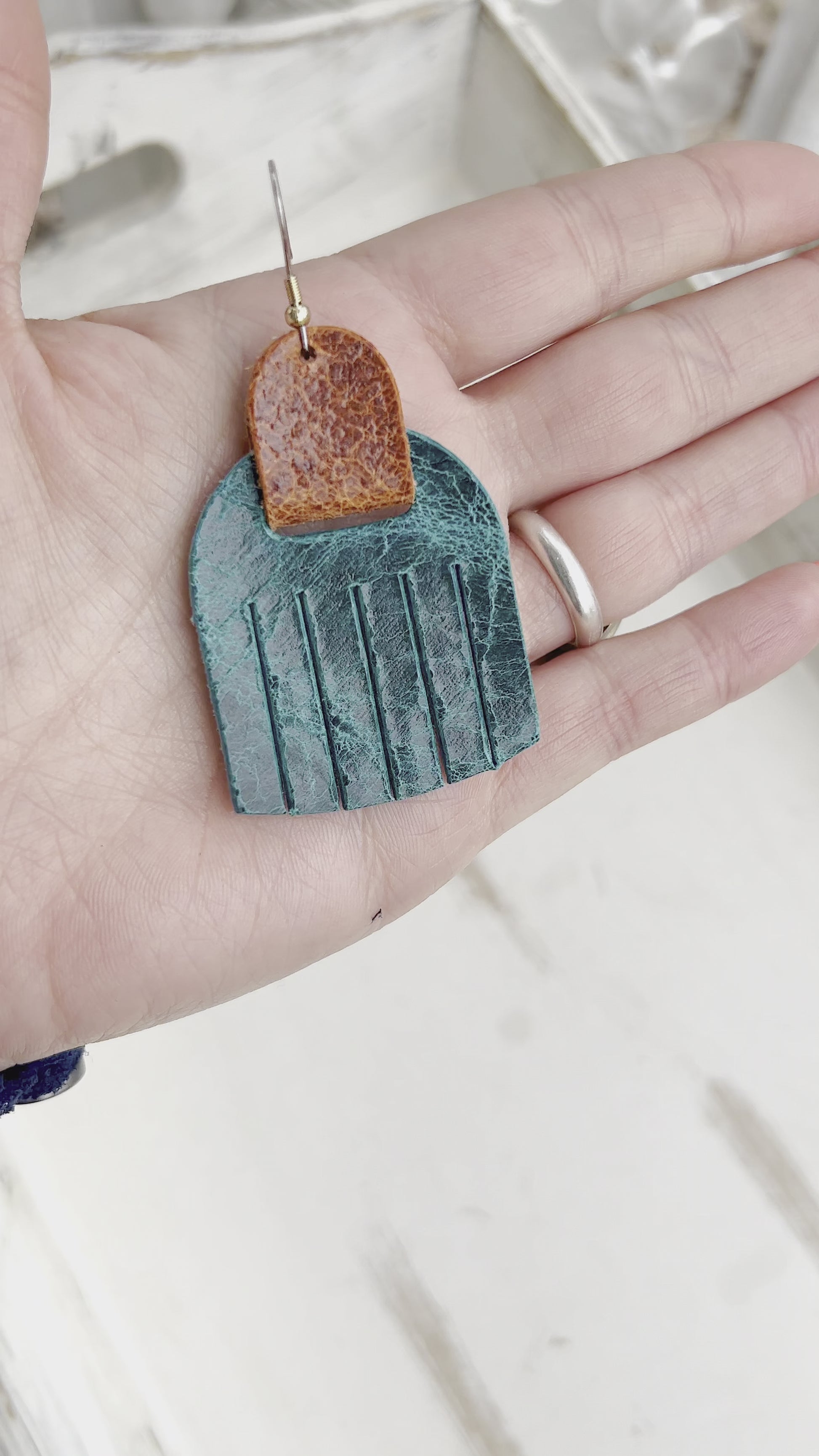 Leather Earrings / Fringies / Vintage Teal & Vintage Brown