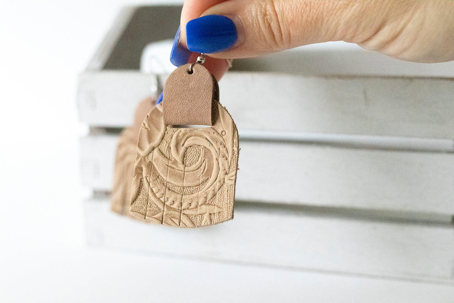 Leather Earrings / Fringies / Western Floral & Rose Latte
