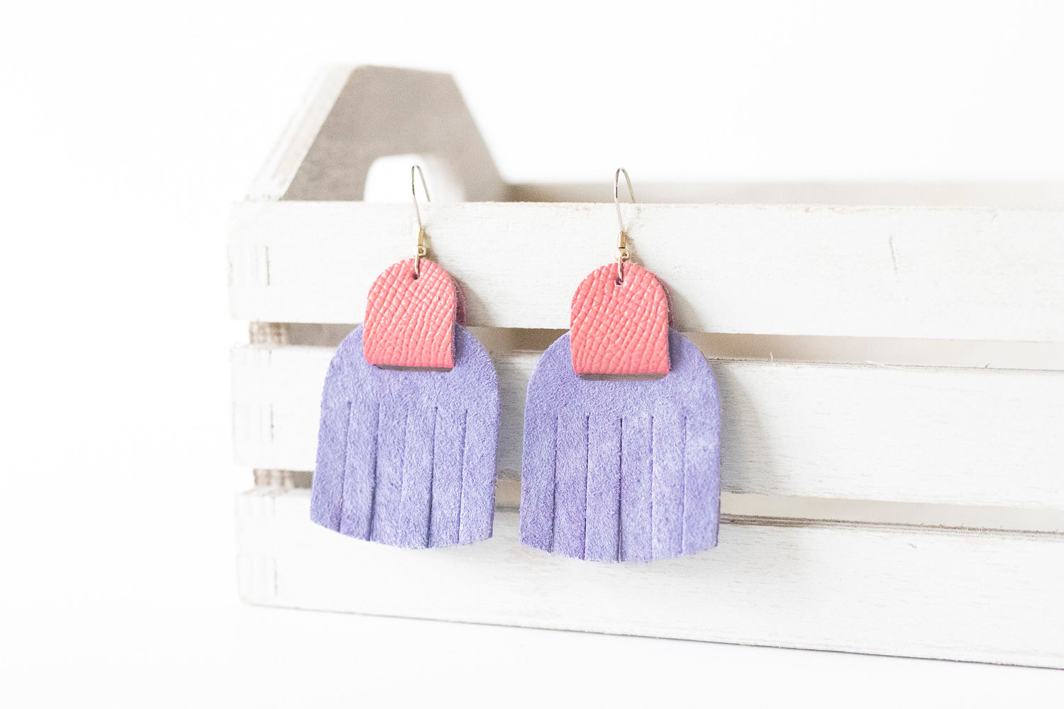 Leather Earrings / Fringies / Wisteria Nubuck & Pink Cherries