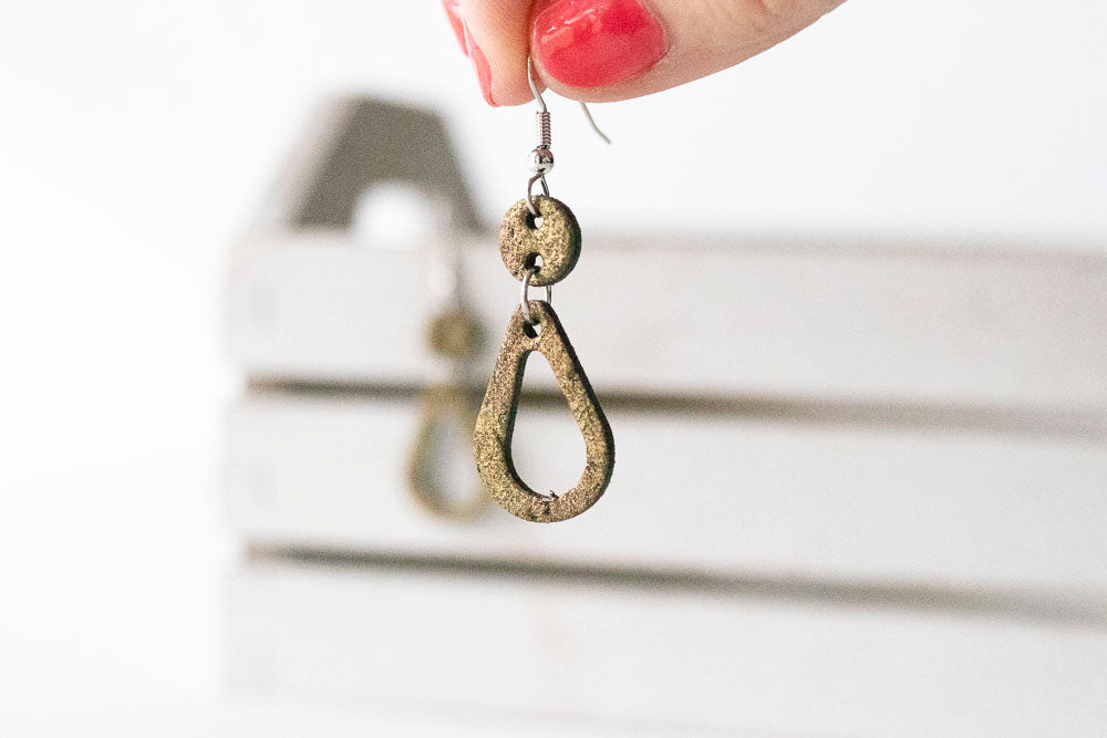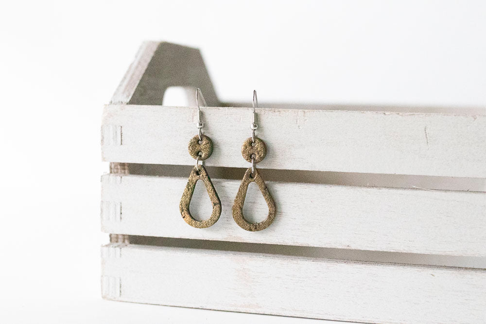 Leather Earrings / Hollow Droplets / Antique Pyrite