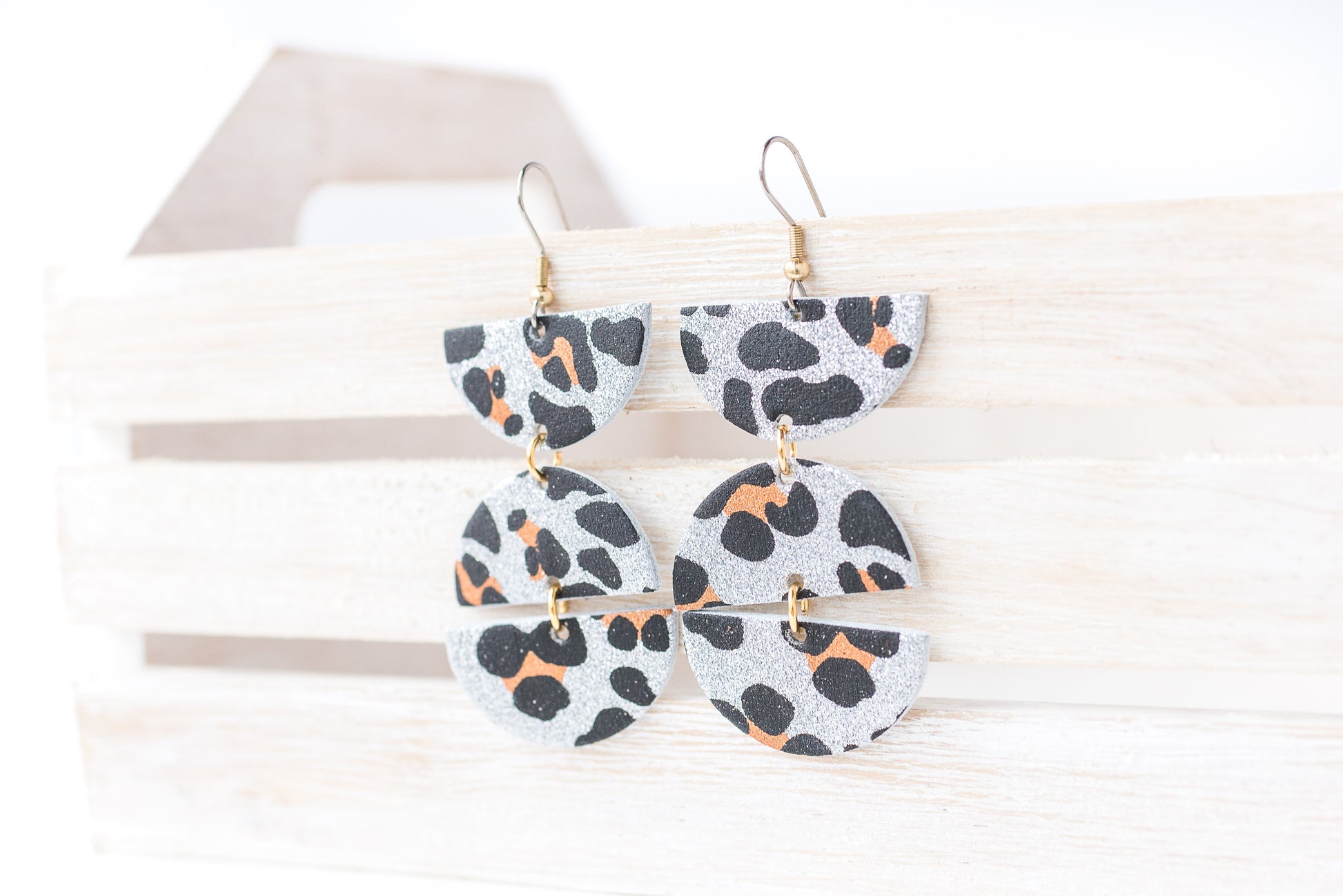 Leather Earrings / Mila / Sparkle Leopard Silver