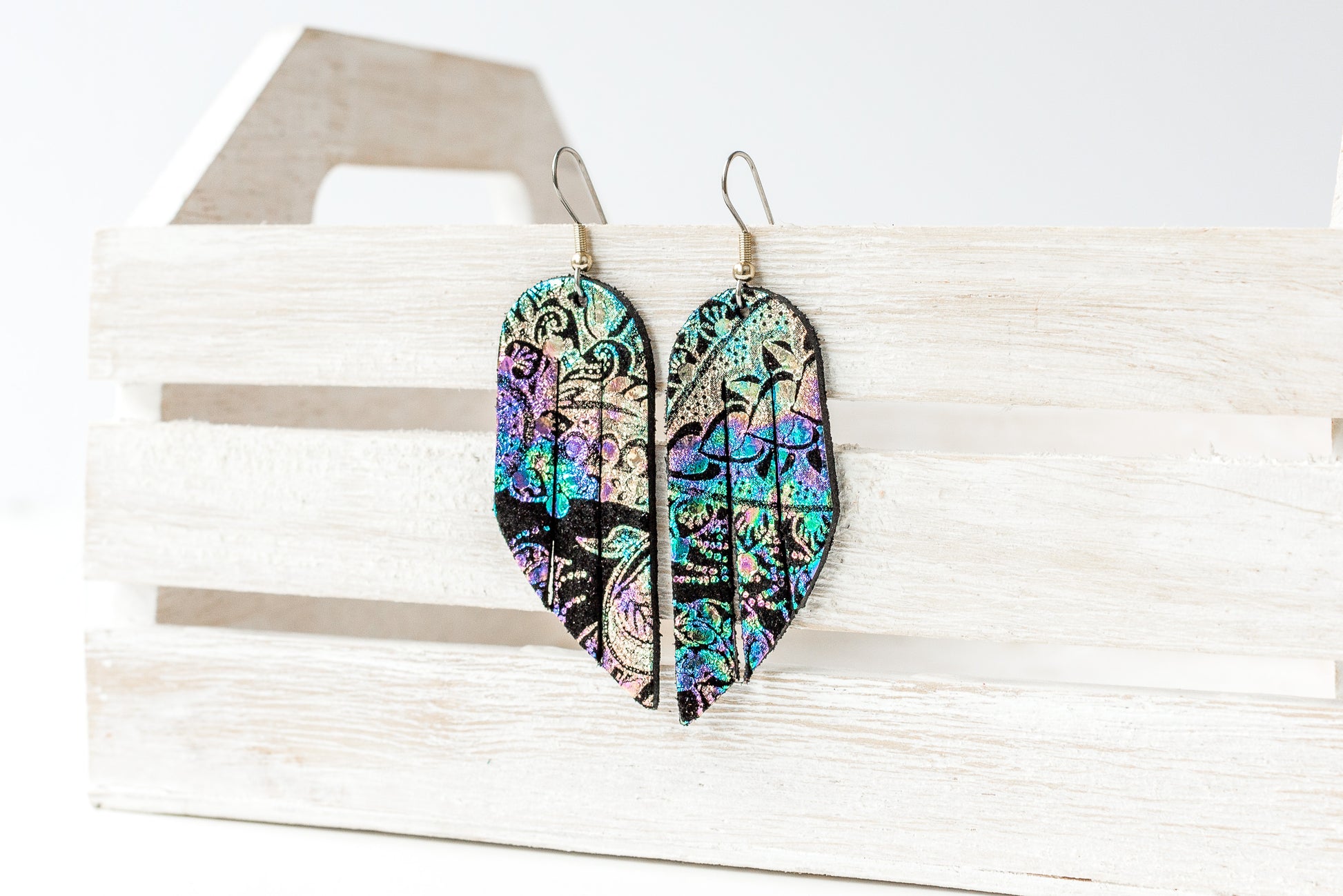 Leather Earrings / Mini Fringe / Cosmic Midnight
