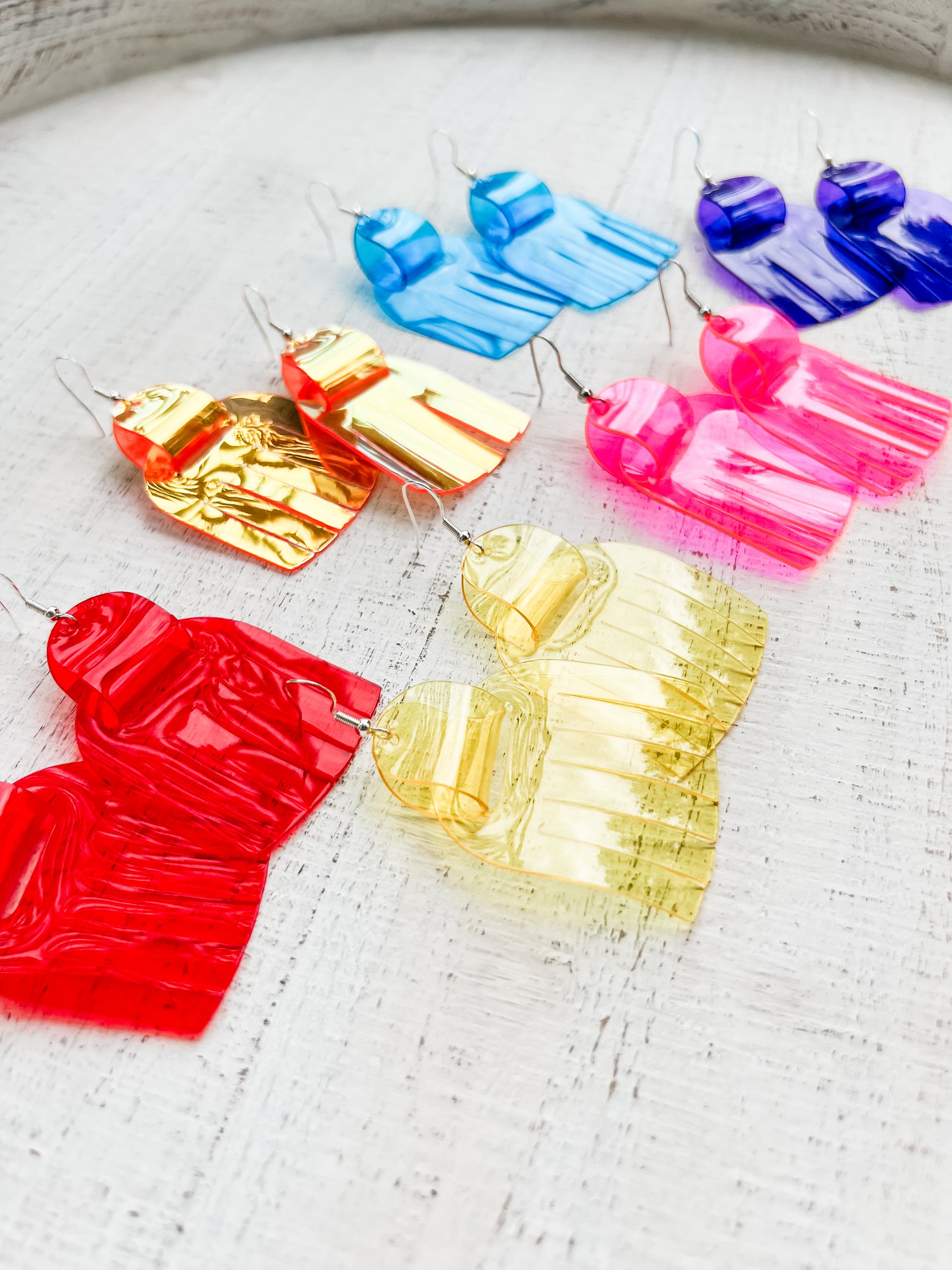 These gorgeous mini fringe jelly vinyl earrings are light as a feather!