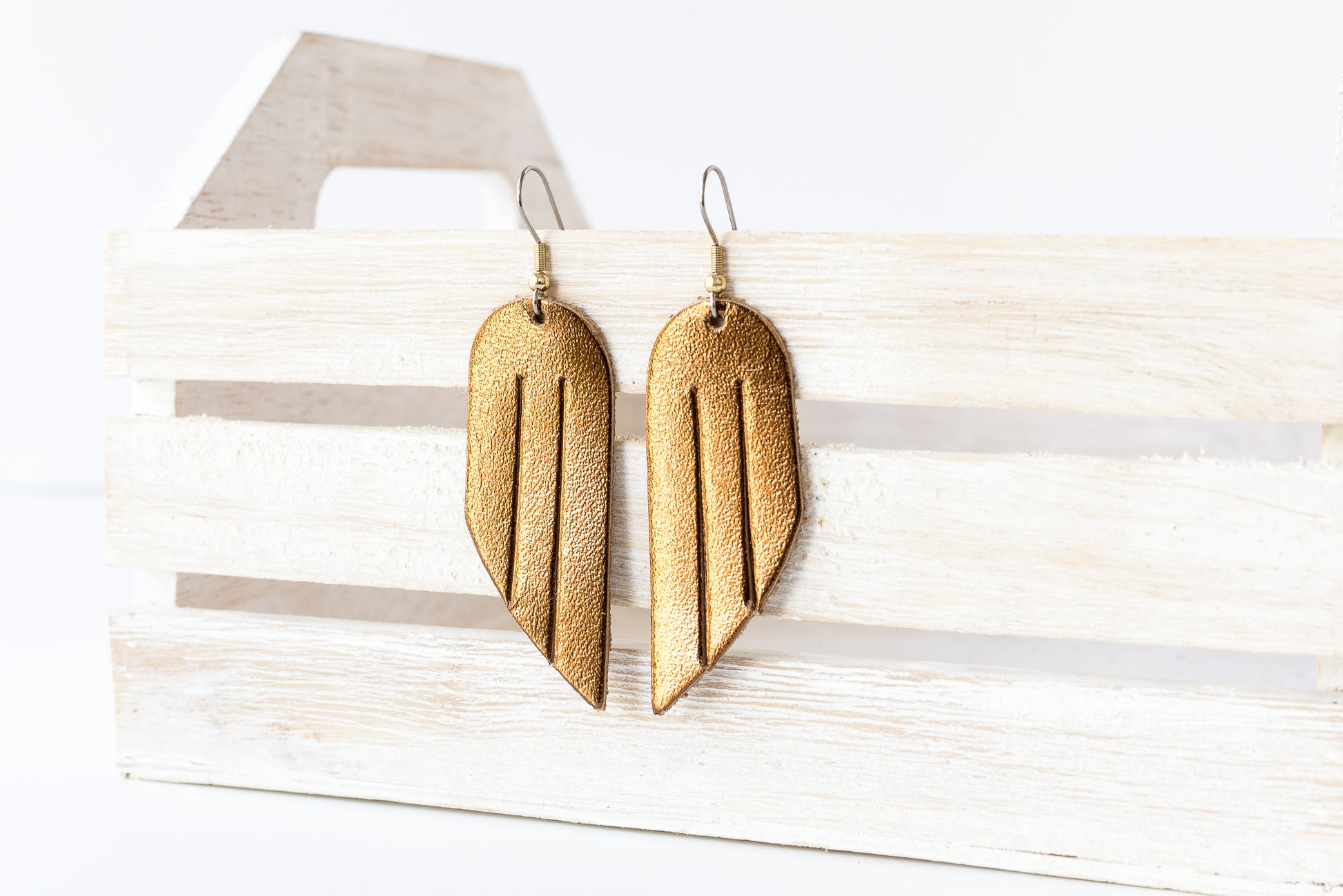 Leather Earrings / Mini Fringe / Metallic Bronze