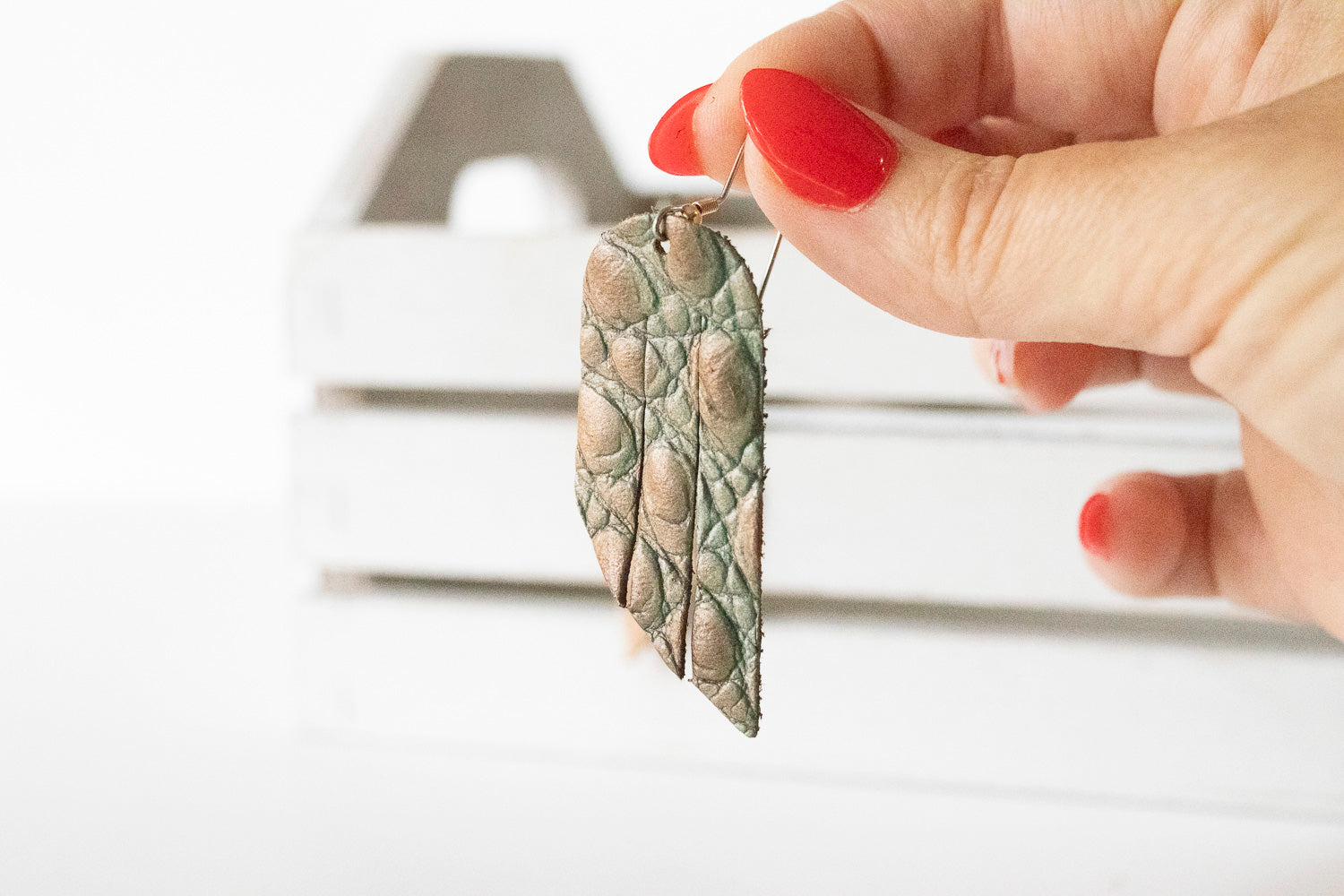 Leather Earrings / Mini Fringe / Ombre Gator