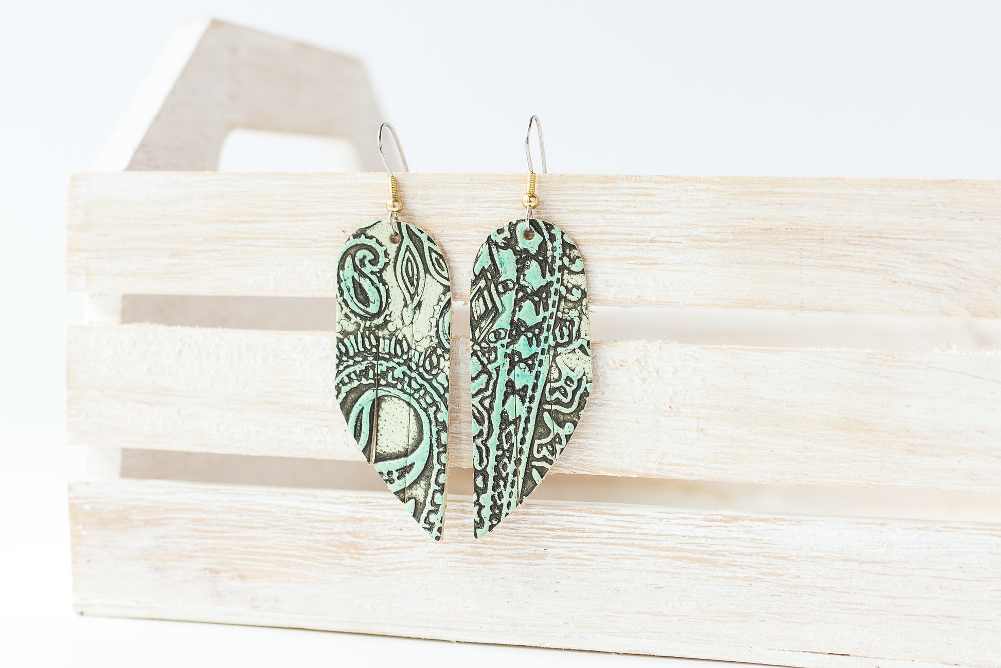 Leather Earrings / Mini Fringe / Paisley Turquoise
