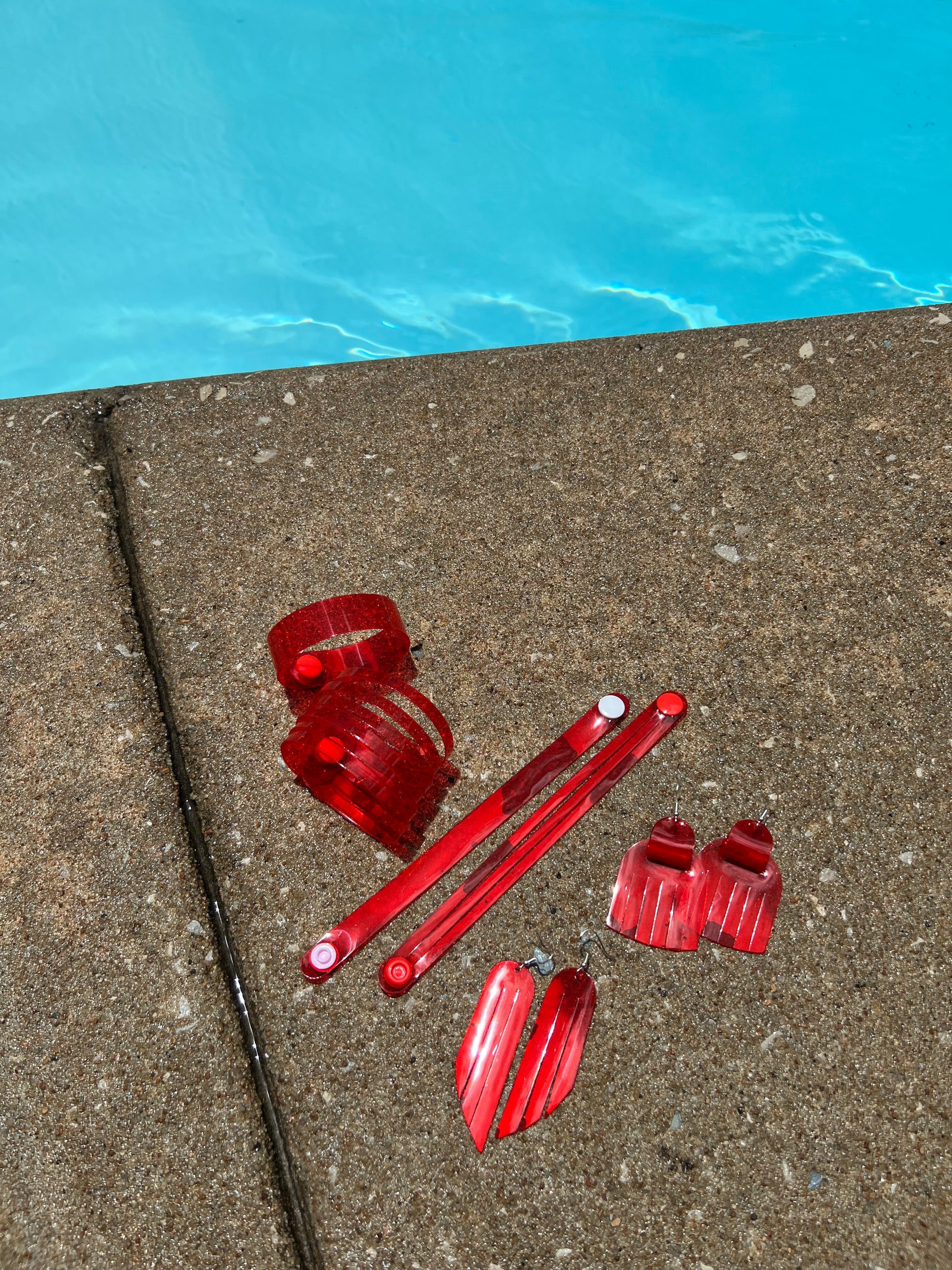Leather Earrings / Mini Fringe / Strawberry Jelly