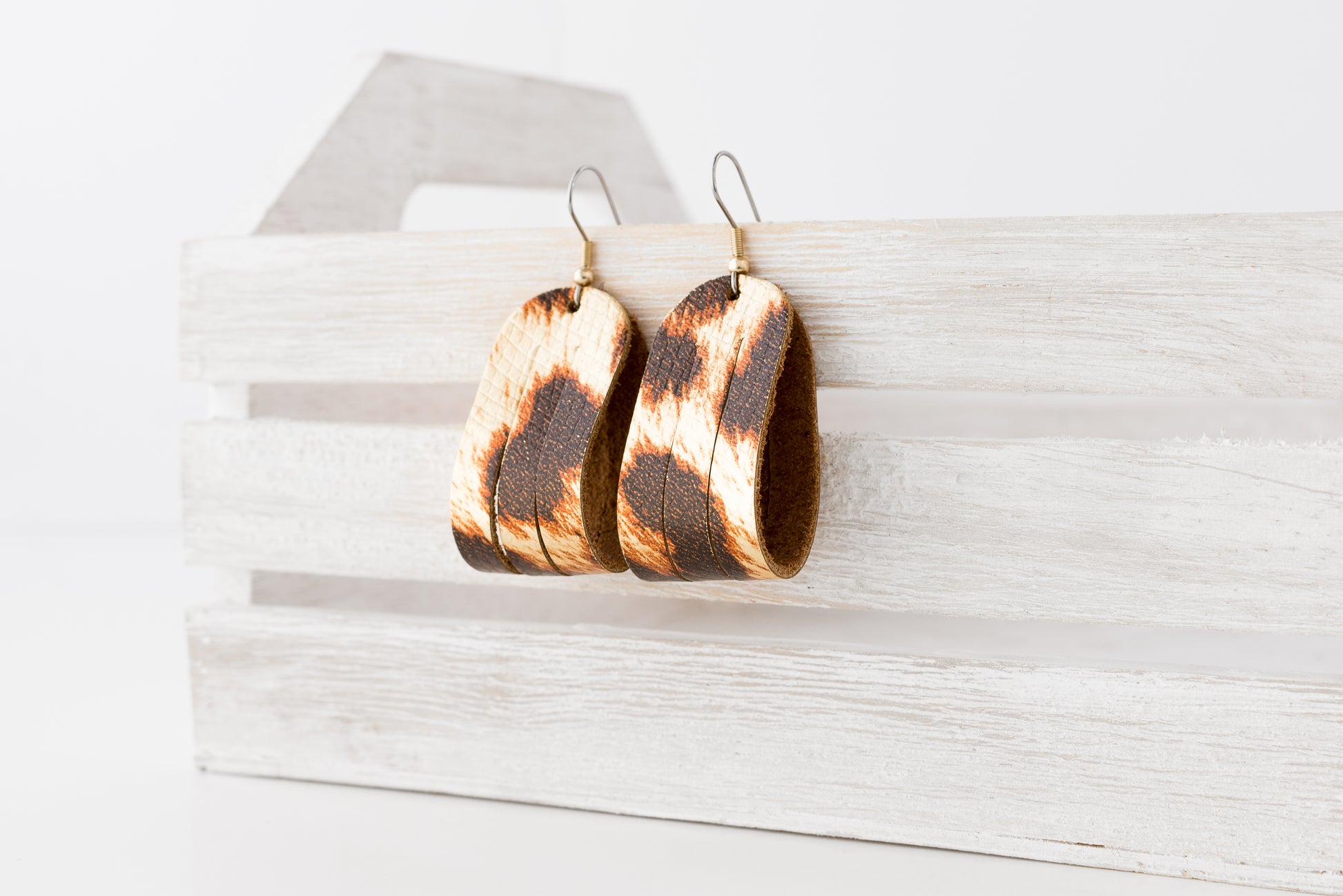 Leather Earrings / Mini Sliced / Shimmer Big Cat