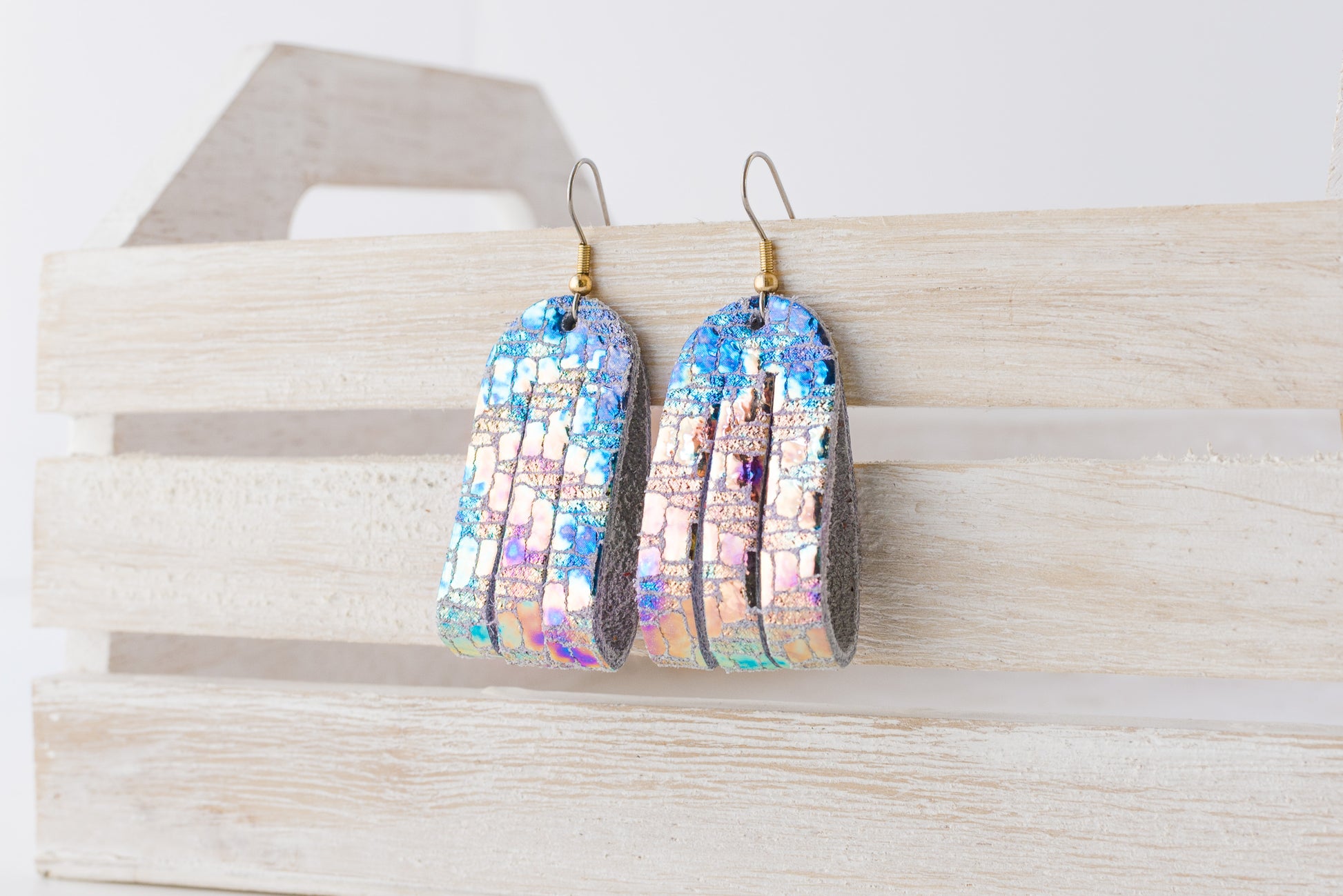 These gorgeous sliced leather loop earrings are light as a feather!