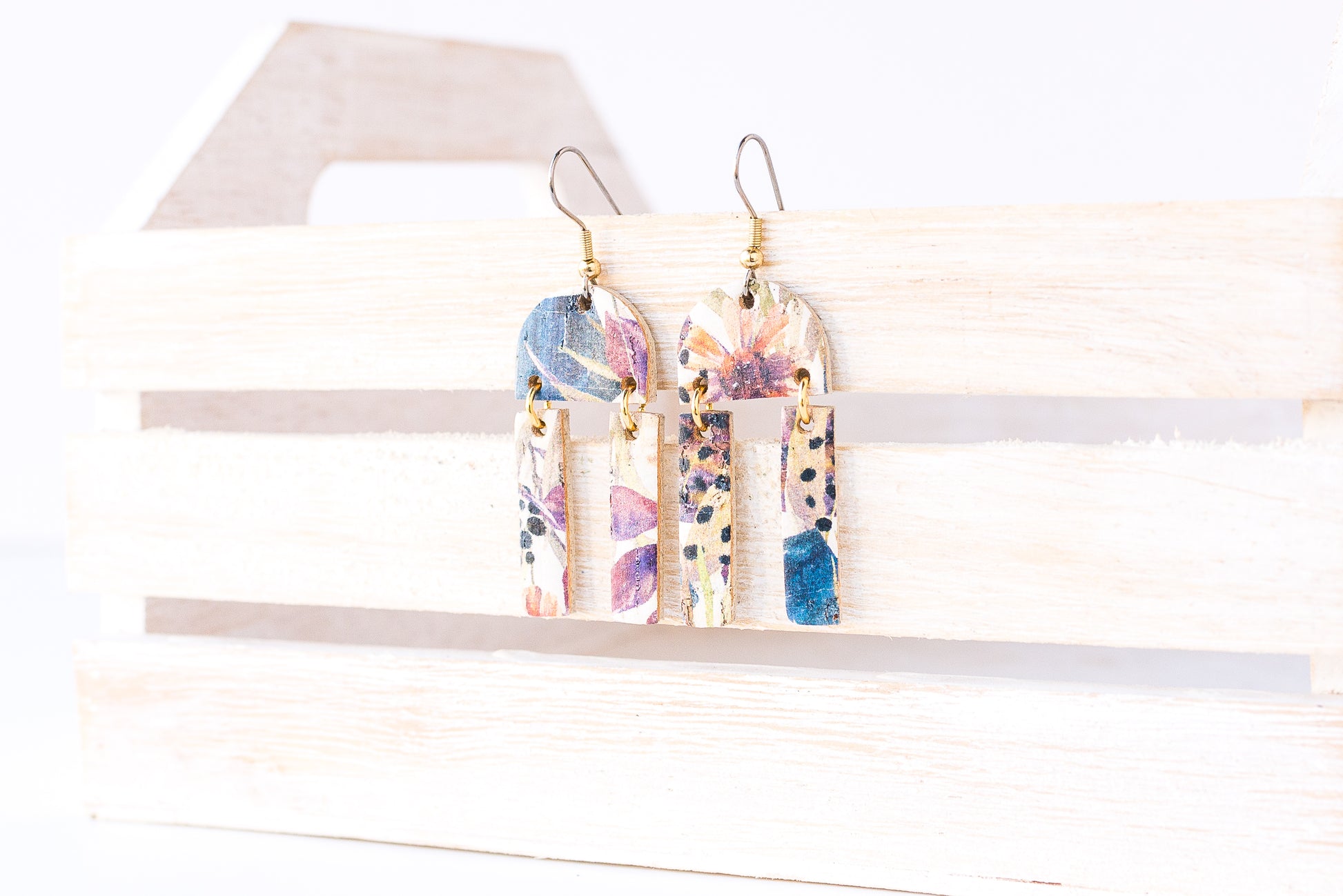 Leather Earrings / Mini Sunrays / Pressed Flowers Cork