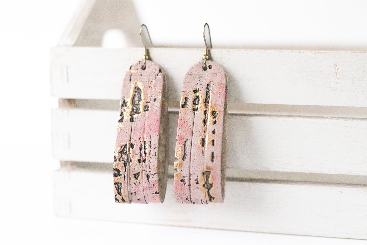 Leather Earrings / Sliced Leather / Driftwood Almond Blossom