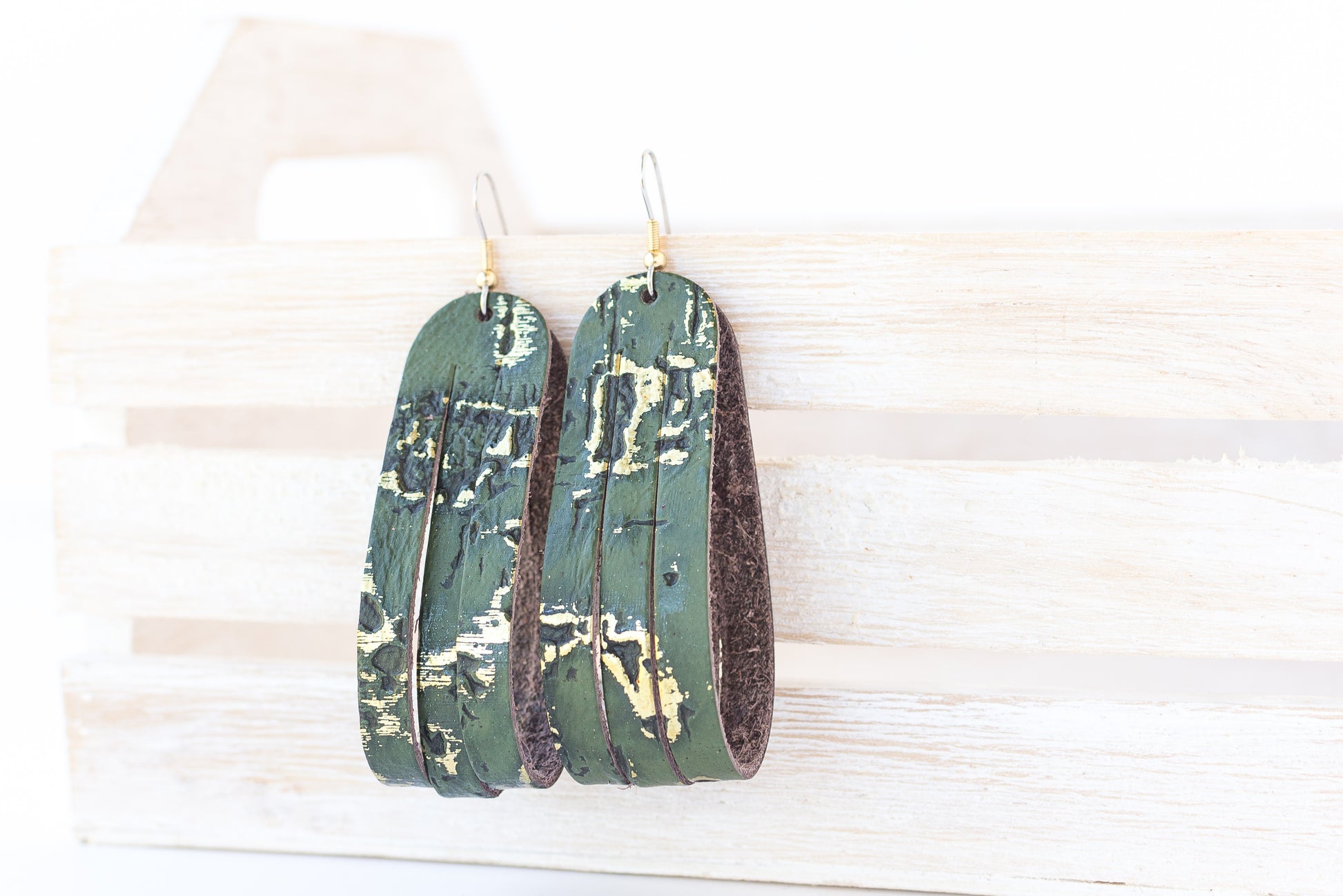Leather Earrings / Sliced Leather / Driftwood Olive