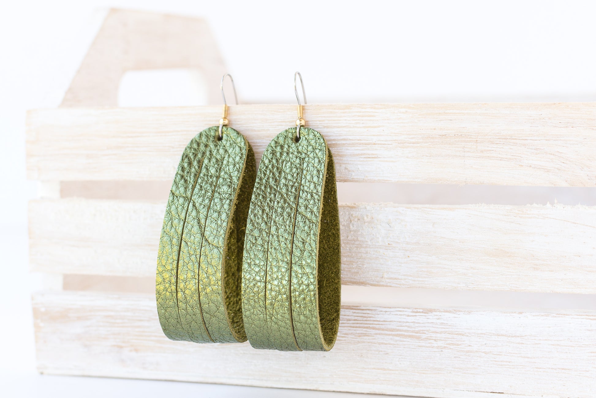 Leather Earrings / Sliced Leather / Soft Olive