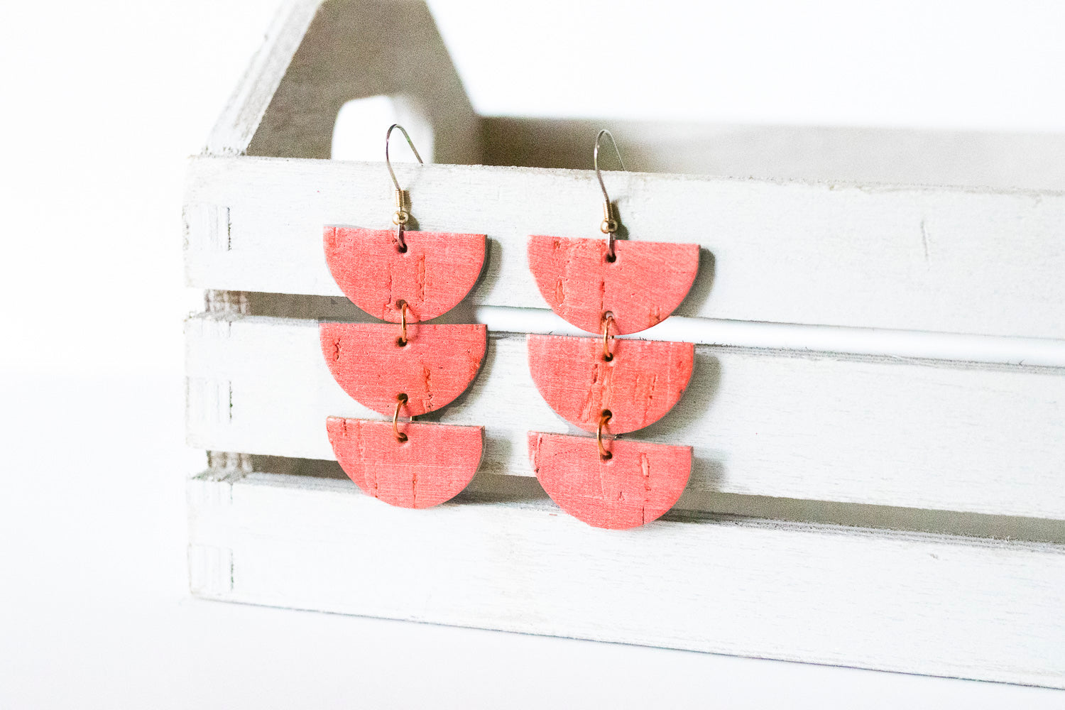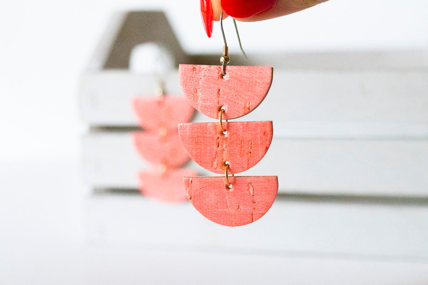 Leather Earrings / Tri Luna / Cherry Slush Cork