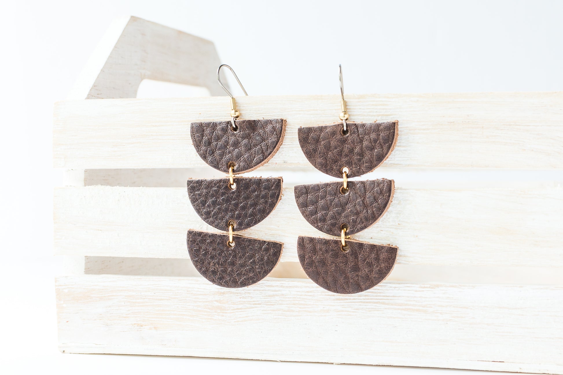 Leather Earrings / Tri Luna / Chocolate Brown