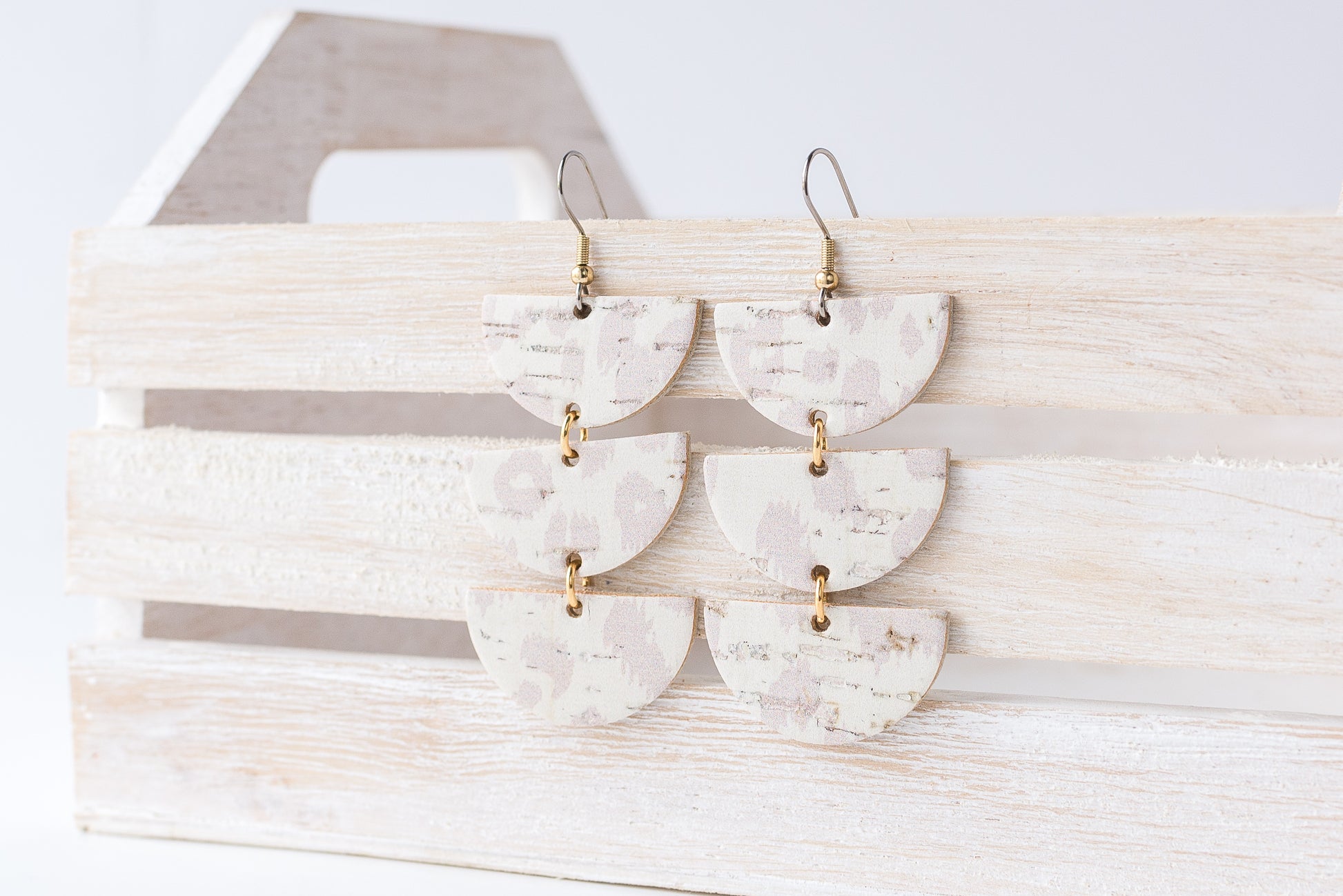 Leather Earrings / Tri Luna / Nude Leopard Cork