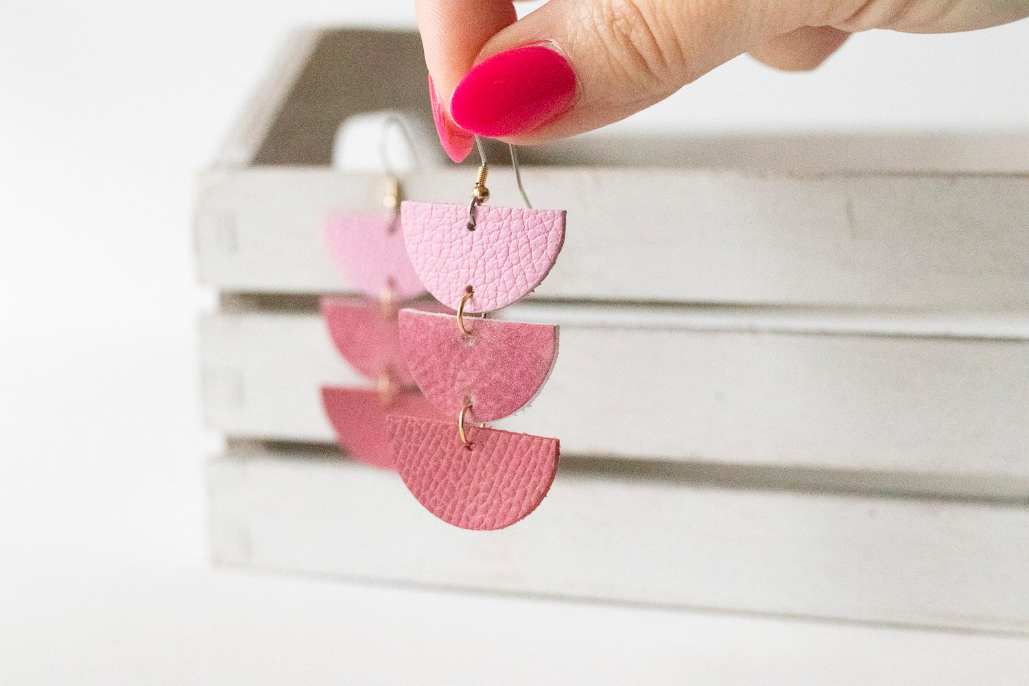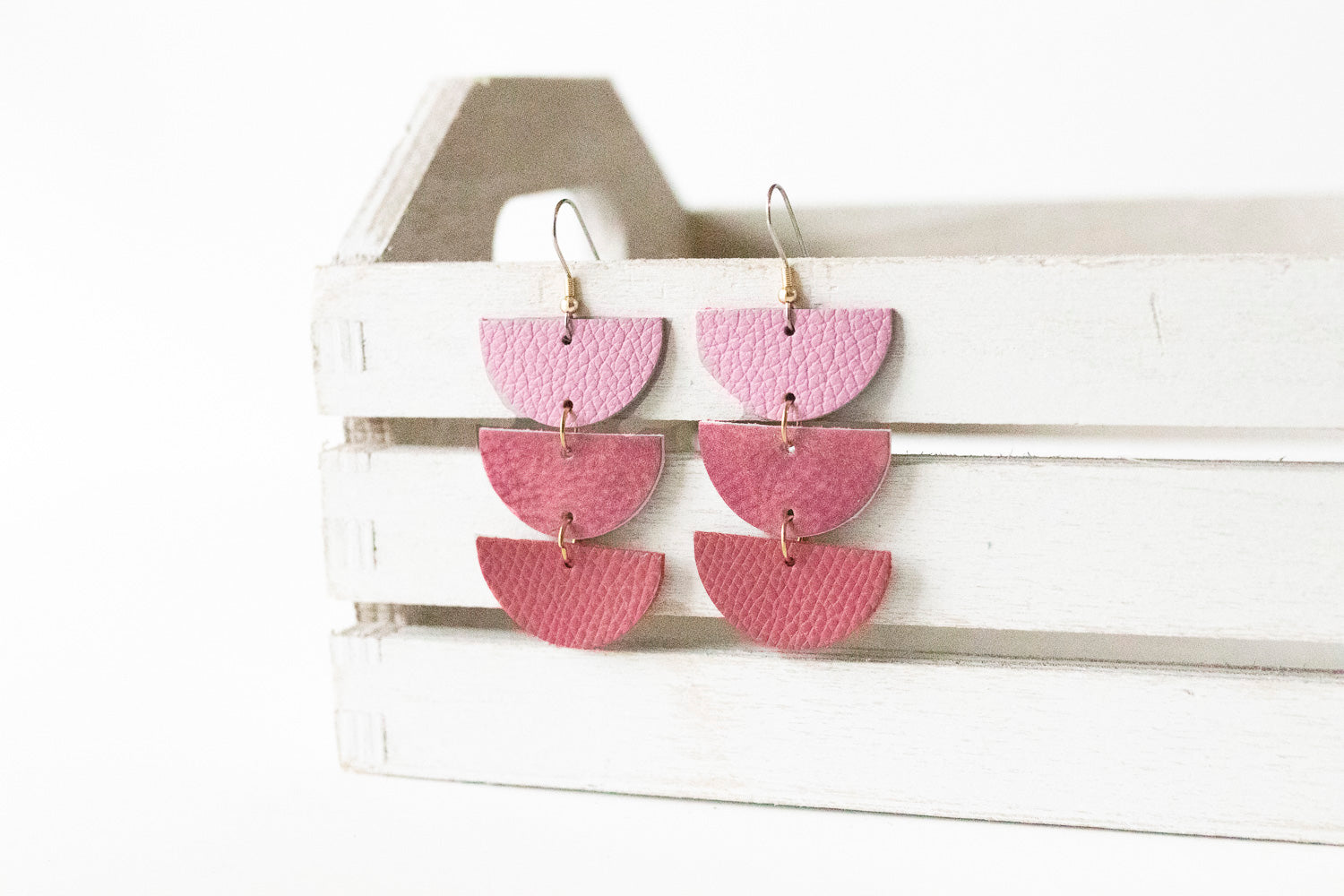 Leather Earrings / Tri Luna / Pink Bouquet
